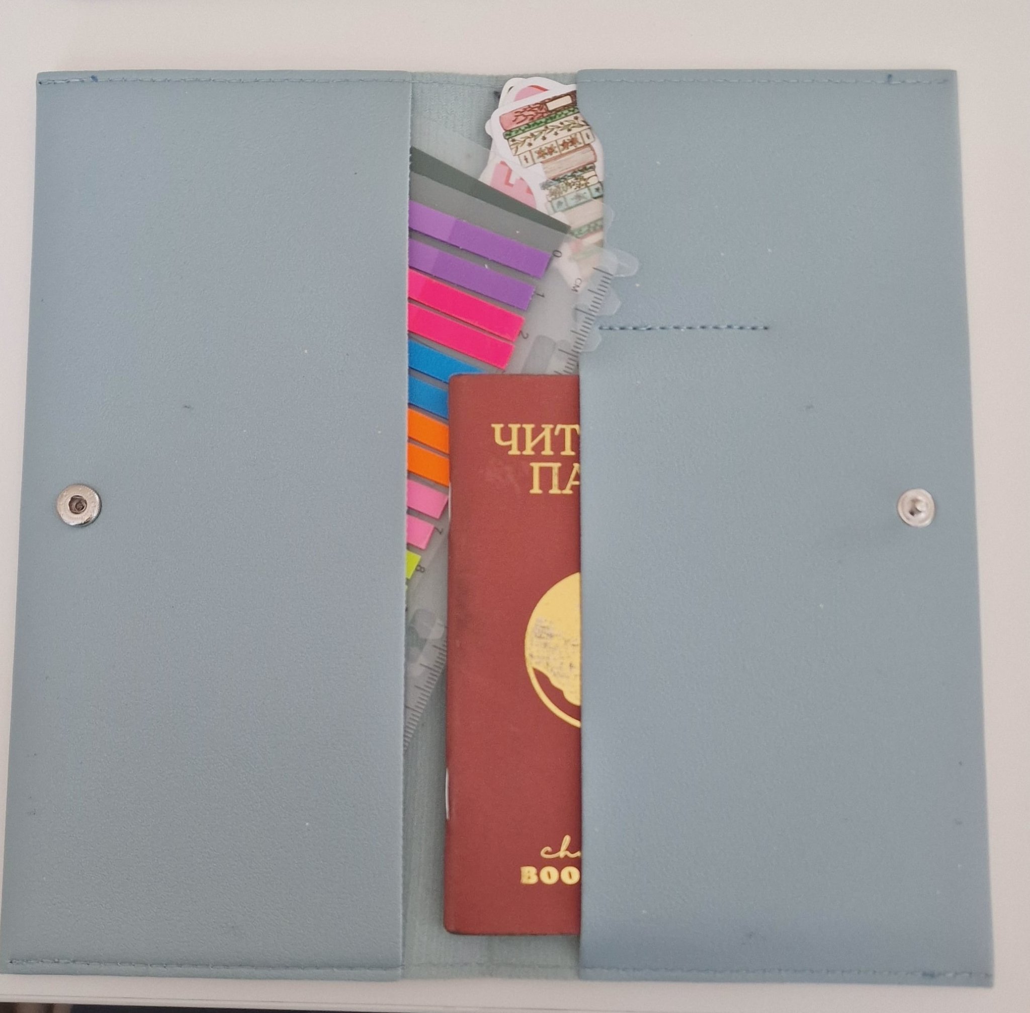 Даже му поръчах калъфче, че го направих на баничка в чантата.. Което не е предназначено за това разбира се ,но го събира идеално - заедно със стикерчета за цитати, книгоразделител и стикери.