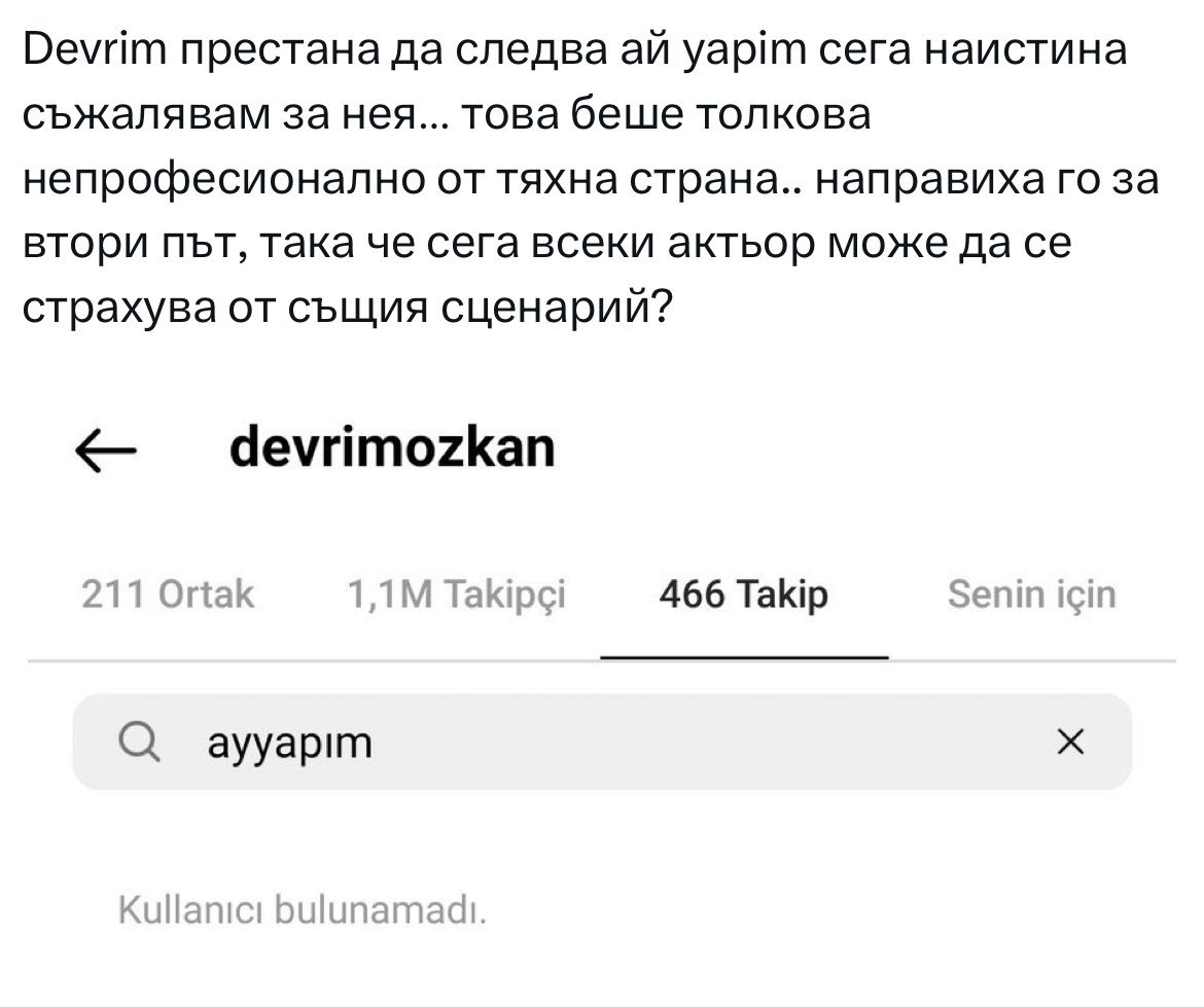 „Мислиш ли, че ще позволя това да се случи? Ще останем в града, докато не навършим 70 години. „Имаме още много партита да посетим!“ Казвам му, поемайки ролята на говорител. Не бих посмял да видя как Керем се превръща в отшелник! Има много проекти, които ще го запазят в сърцата на всички още няколко години. Актрисата, която споделя главната роля с него, е Деврим Озкан. С вълнението да предаде историята, която е написал на режисьор, той ни казва, че това не е сценарий, моделиран според желанията на публиката, които познаваме добре благодарение на традиционните. медии. Той разкрива дефектите на любовта повече от нейното съвършенство. „Това е сценарий, вдъхновен от самия живот, особено от съжаленията“, казва Керем и продължава: „Ние разказваме историята чрез любовта. Разбира се, любовта е много общо понятие. В този филм разглеждаме токсичното състояние на любовта, кой е прав и кой крив и оставяме тази част на интерпретацията на публиката. Освен за любовта, говорим и за съжаленията и травмите, които сме преживели в живота си. Нашите главни герои, в първия вариант на сценария, бяха наистина безупречни. Малко съм ги замърсил, но не сме ли така и в реалния живот? Почти никога няма връзка, в която живеем без несъвършенства." Питам го, не от сензационен импулс, а от сърце: "Били ли сте някога в токсична връзка?" Той признава: "Да. Това, което прави една връзка токсична, е неспособността да я прекъснете. Да не можеш да я нарушиш, дори ако наранява теб или другия човек, е химическо разстройство, което е еднакво за всички и е още по-лошо да го осъзнаваш и не се освободиш. За щастие не са много.