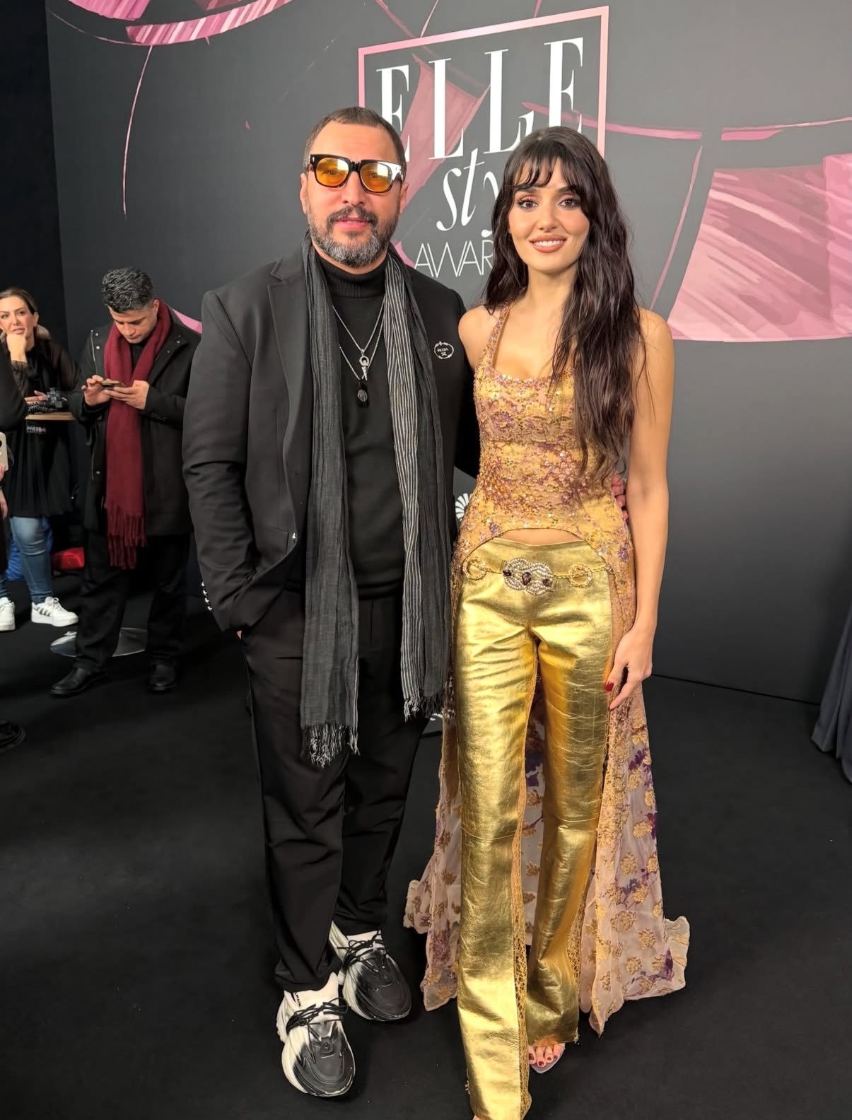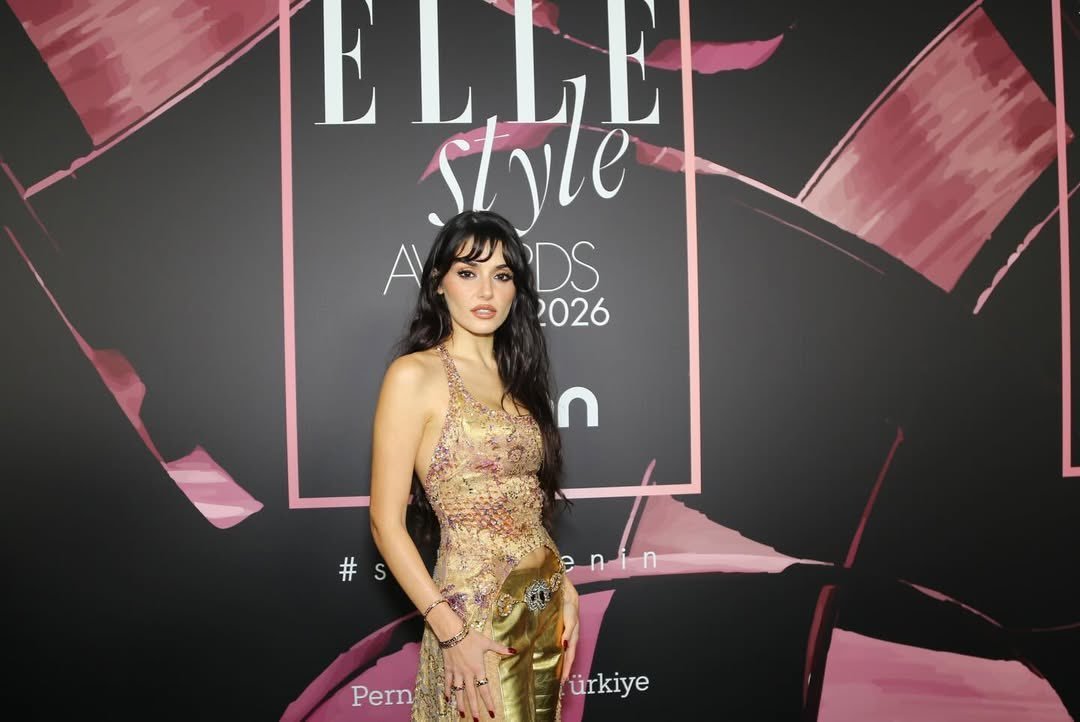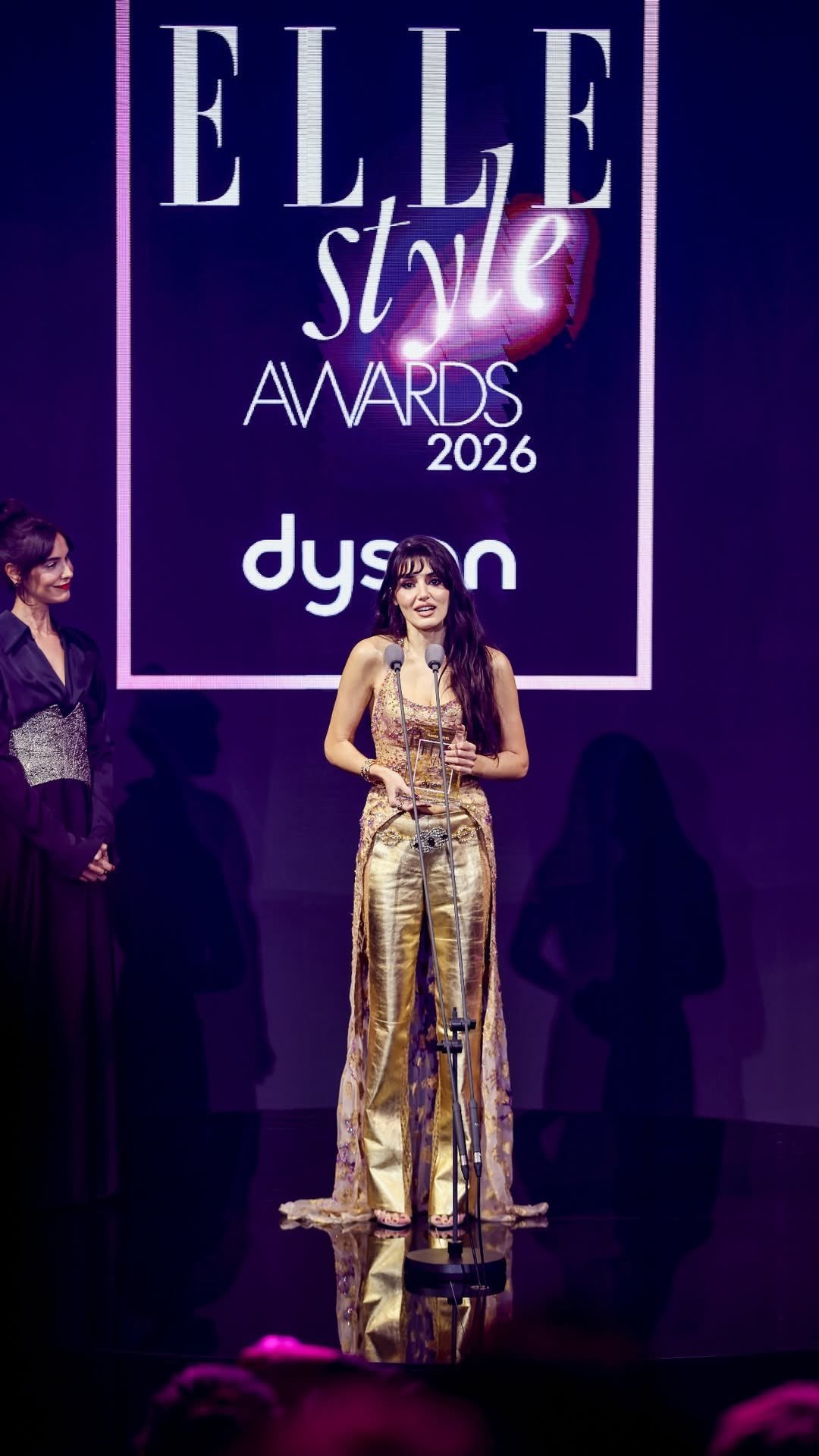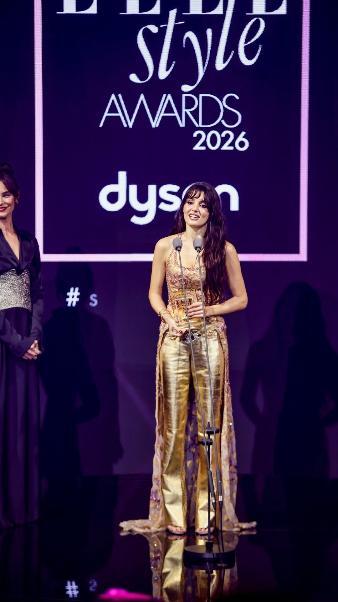 "Ханде Ерсел на сцената на наградите Elle Style Awards получава своята награда."