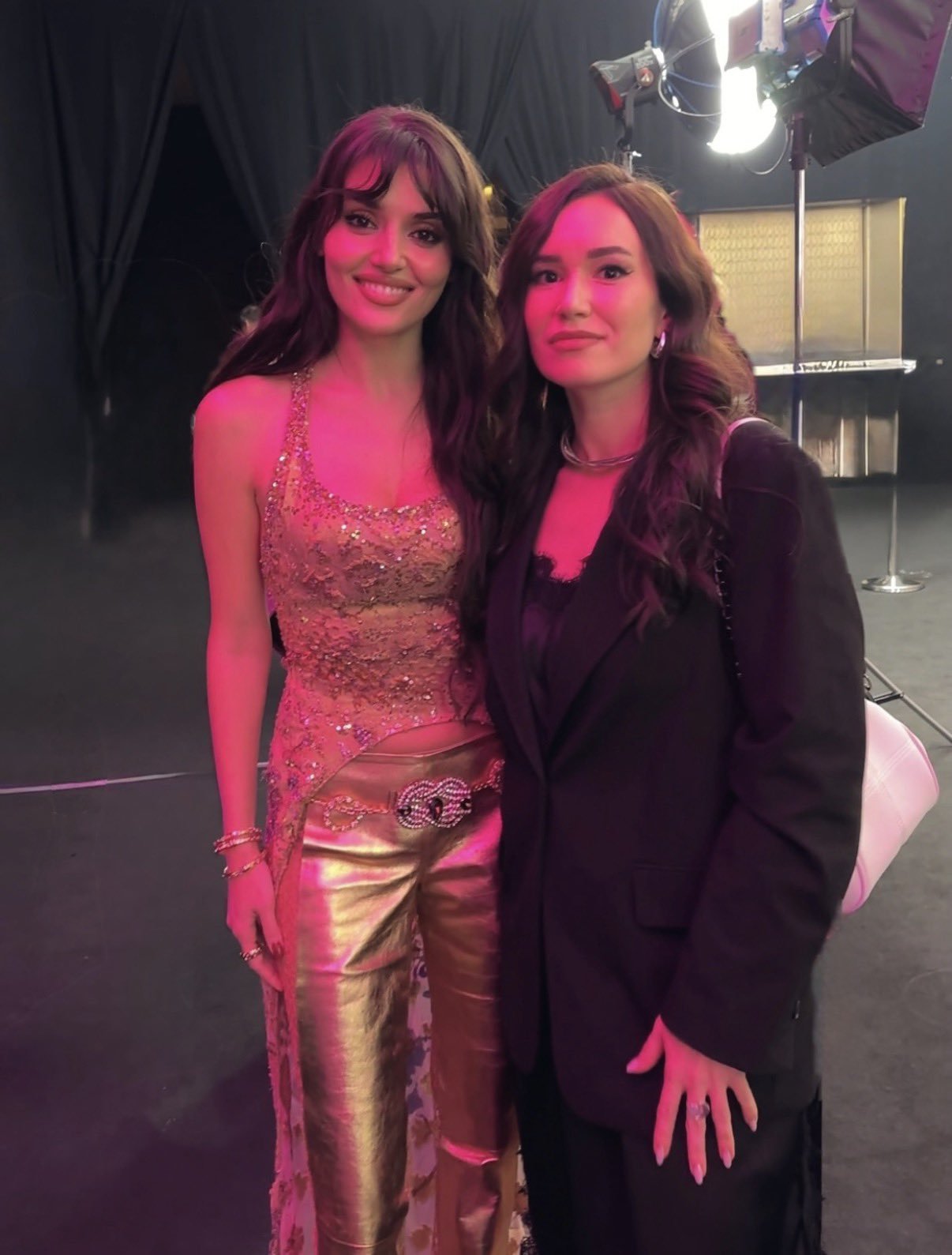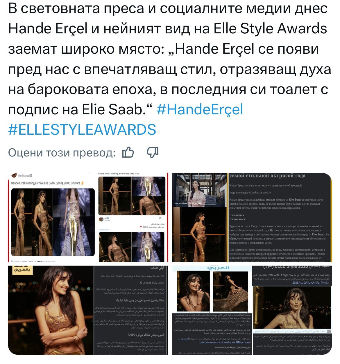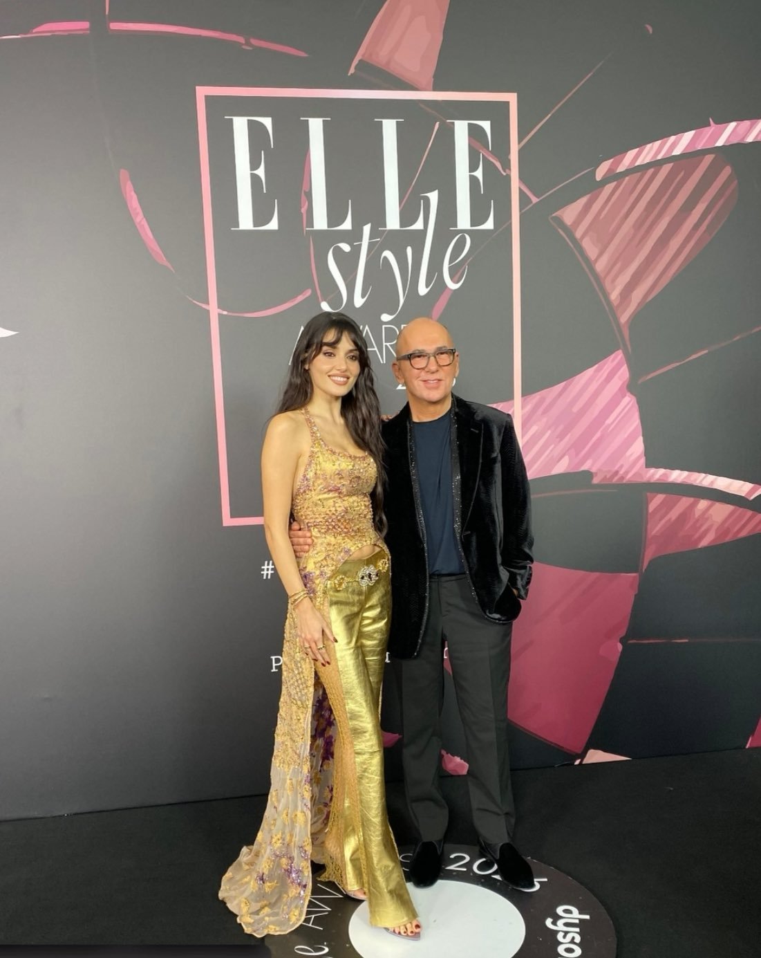 "Ханде Ерсел на сцената на наградите Elle Style Awards получава своята награда."