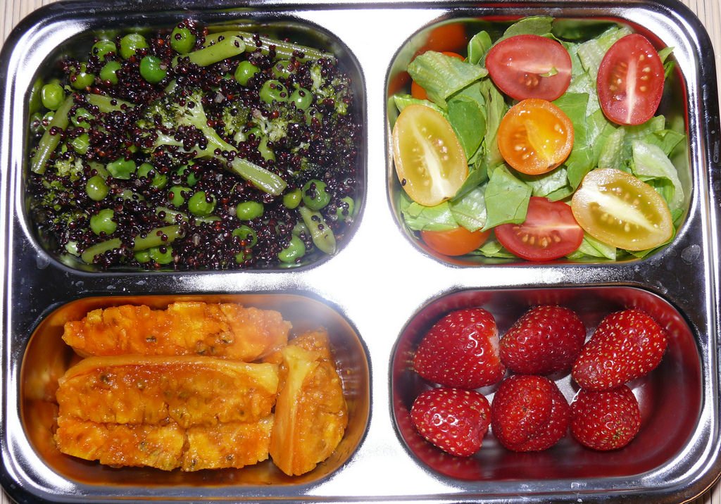 - Някои предложения за рецепти за закуска и обяд в училище включват сандвичи с крема сирене и пушена пуйка, печено пиле с печен картоф, тиквички с домати и яйце, пържоли от пуйка със зеленчуци и кестени, тиквички с домати и яйце, пица с блат от карфиол , палачинки със сладко от ягоди и много други. За закуска се предлагат макарони със сирене с овче сирене и масло, овесена каша с мляко и мед, попара с препечена филийка, а за десерт - плодово кисело мляко, барове с ядки и плодове, мъфини и домашни бисквитки. Някои предложения за ястия за обяд в училище включват пилешки хапки с кетчуп, кюфтета на фурна с картофена салата, пилешко филе, салата от варени картофи, червен боб, печена чушка, спагети больонезе , мусака от патладжан и телешко месо и картофено пюре с печено месо.