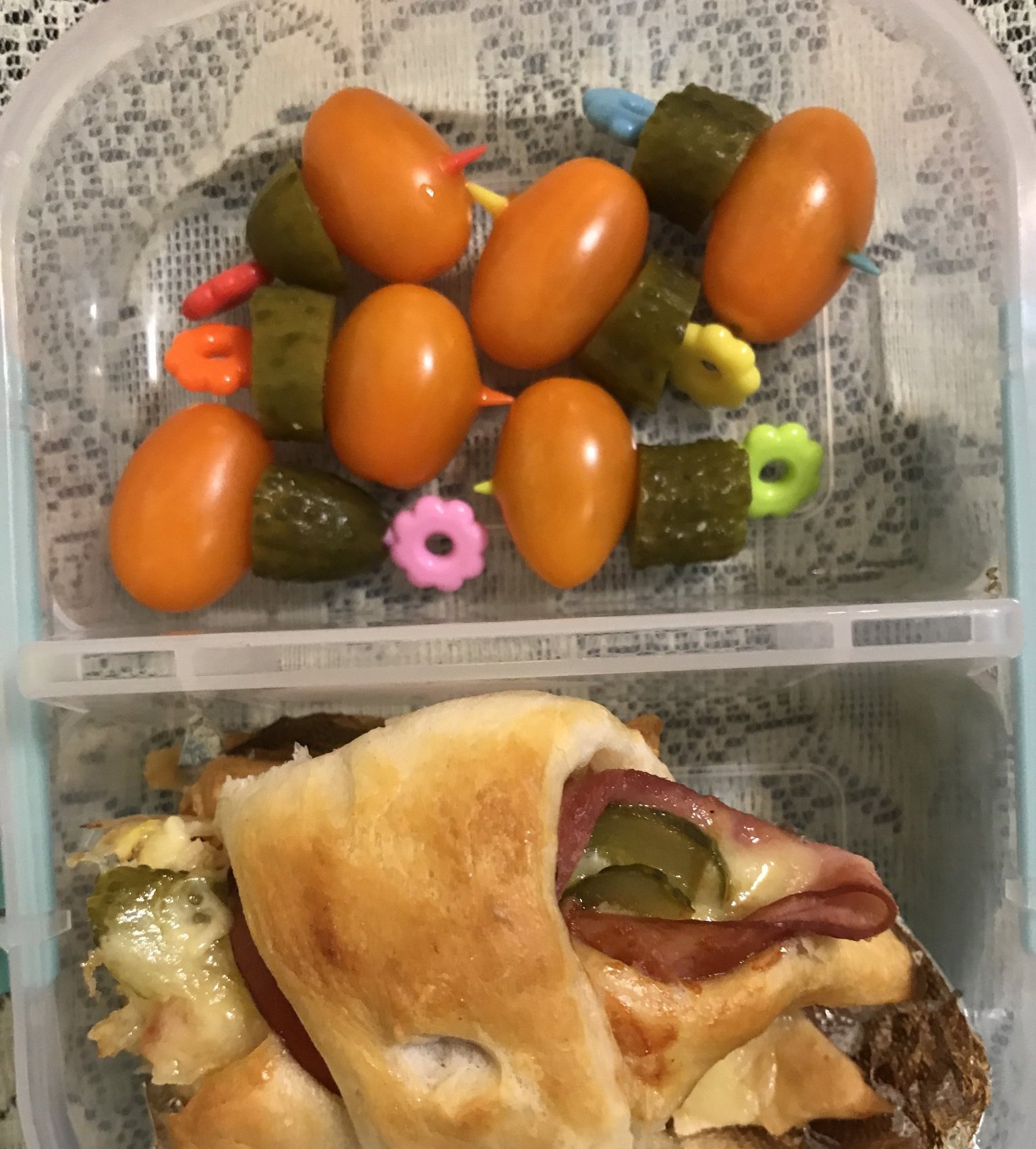 - Някои предложения за рецепти за закуска и обяд в училище включват сандвичи с крема сирене и пушена пуйка, печено пиле с печен картоф, тиквички с домати и яйце, пържоли от пуйка със зеленчуци и кестени, тиквички с домати и яйце, пица с блат от карфиол , палачинки със сладко от ягоди и много други. За закуска се предлагат макарони със сирене с овче сирене и масло, овесена каша с мляко и мед, попара с препечена филийка, а за десерт - плодово кисело мляко, барове с ядки и плодове, мъфини и домашни бисквитки. Някои предложения за ястия за обяд в училище включват пилешки хапки с кетчуп, кюфтета на фурна с картофена салата, пилешко филе, салата от варени картофи, червен боб, печена чушка, спагети больонезе , мусака от патладжан и телешко месо и картофено пюре с печено месо.