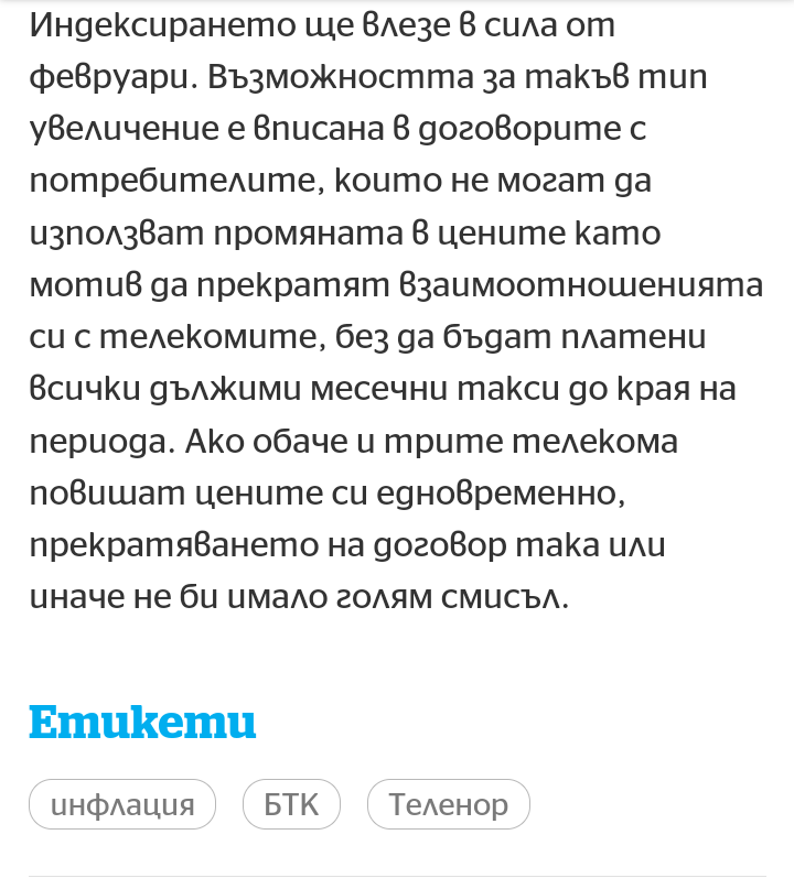Та. Какво значи индексиране и защо просто не увеличат цените на предлаганите планове? И без това повечето абонати преподписват на 2 г, малко са на безсрочни договори?