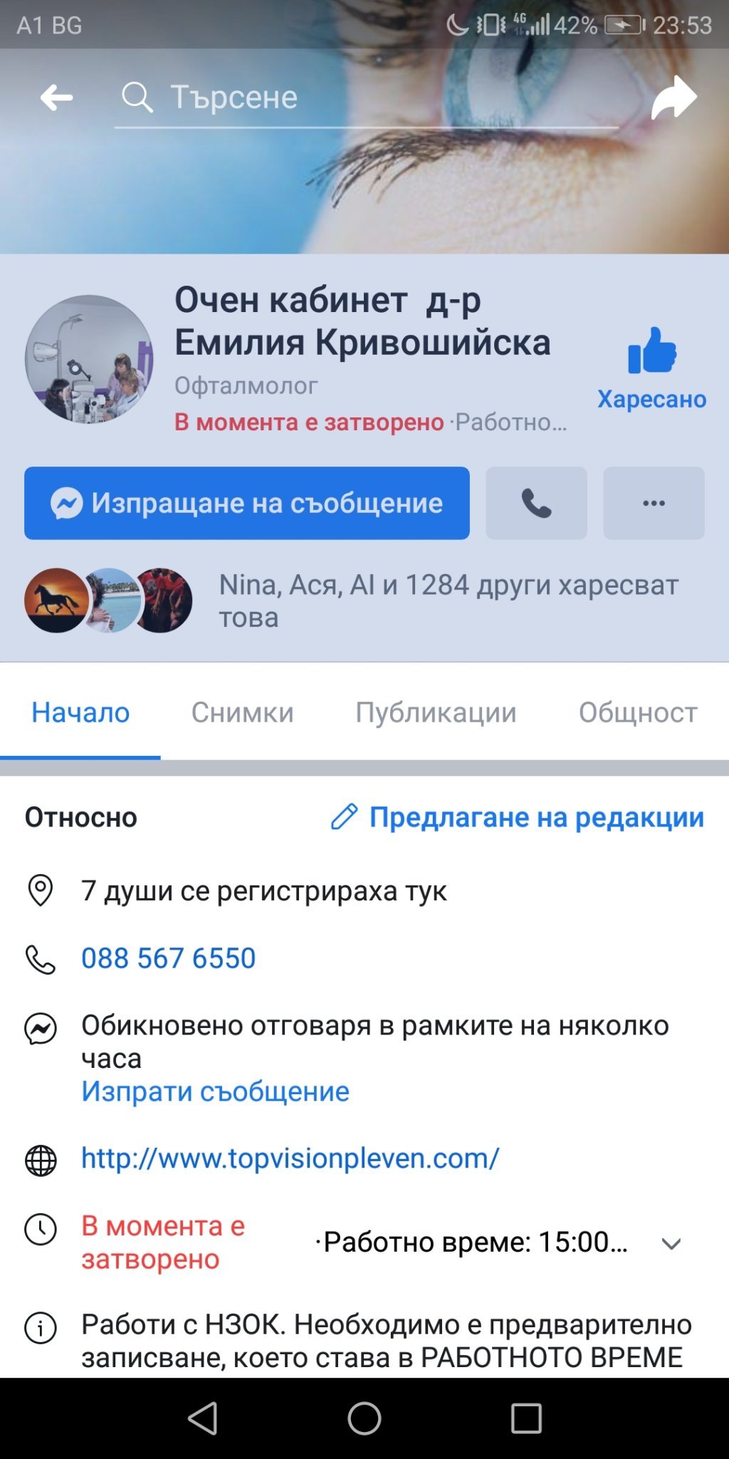 Момичета, може ли актуален телефонен номер на дорктор Кривошийска(офталмолог). Звънях на посочените номера , които намерих в 8нтернет, но никой не отговаря...