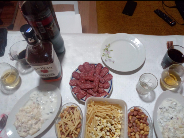 )))) ами с голяма погача, 2 основни, 2 вида гарнитури, 5 вида салати, 2 десерта, 2 вида баници, много мезета, 10 човека се разпорихме, даже накрая ги молих да разрежа тортата, за да я опитаме. Аз си знаех, че така ще стане....