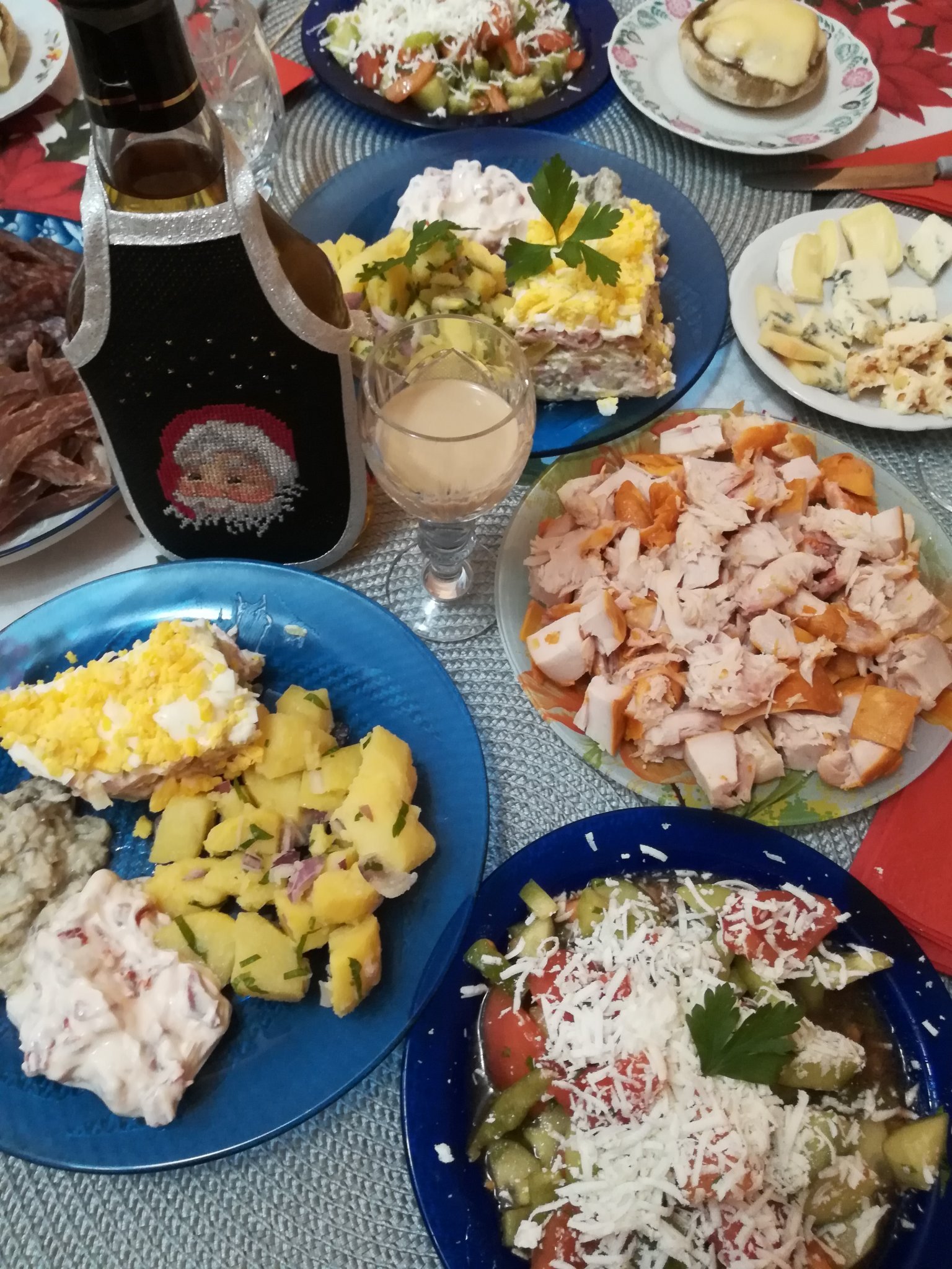 Форумът предлага разнообразие от идеи за новогодишни ястия, включително традиционни ястия като пуйка, пържоли, сърми, суджуци, мезета, туршия и руска салата. Освен това има рецепти за печени чушки с крема сирене и пълнено пиле. Някои уникални предложения включват капама с кисело зеле и свинско месо, патешко с портокали и печена пуйка с ориз. Има също рецепти за пилешко ястие с ориз и кайма, пълнено пиле със зеленчуци като тиква и кестени, както и домашно приготвени десерти като баклава.