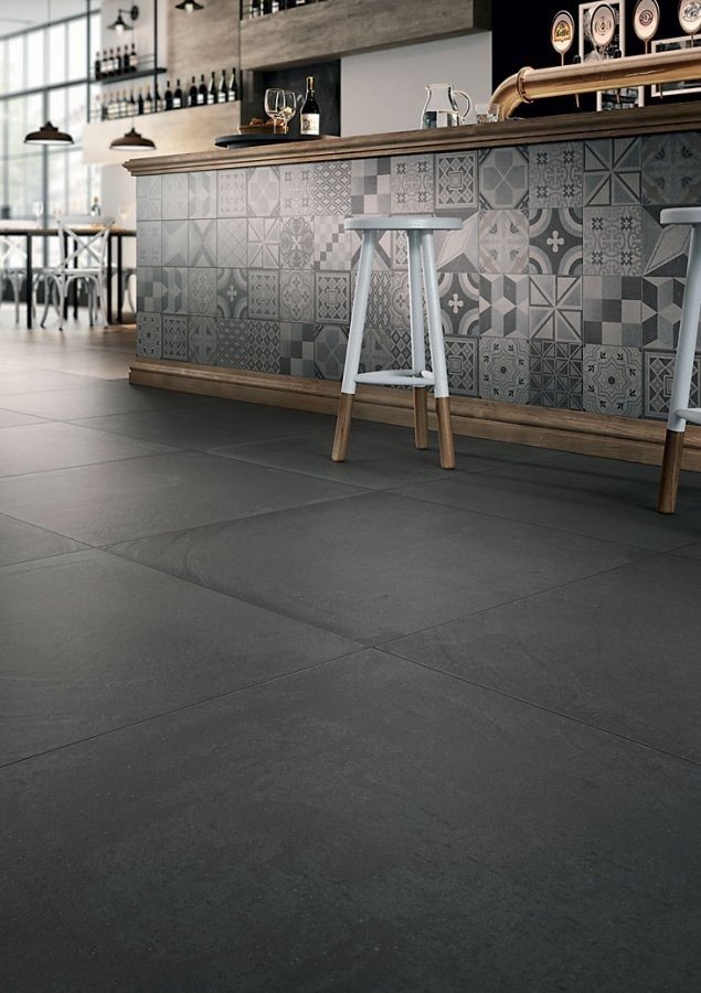 Сивият гранитогрес е нещо подобно с размер 60/120 или по-голям.