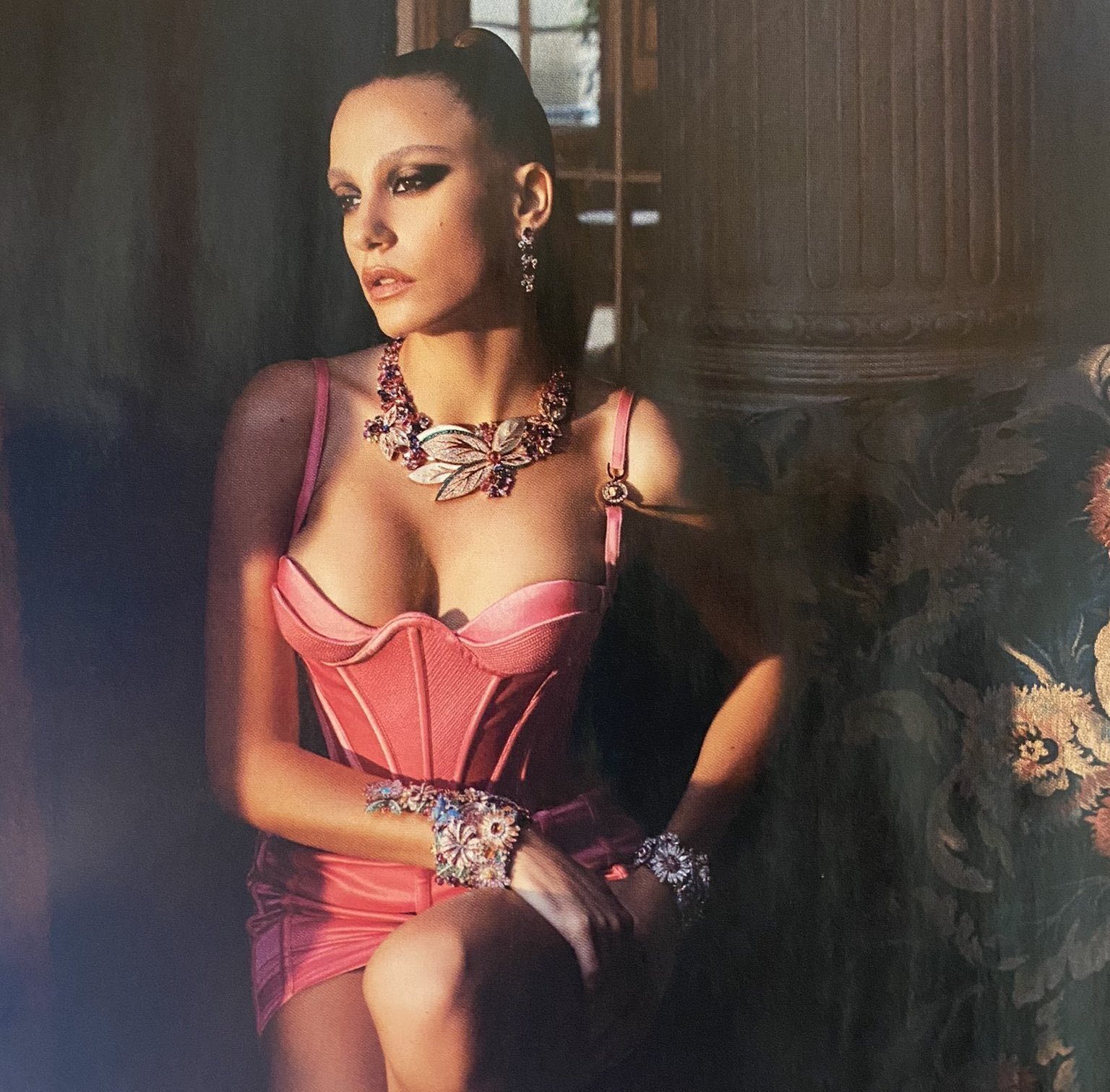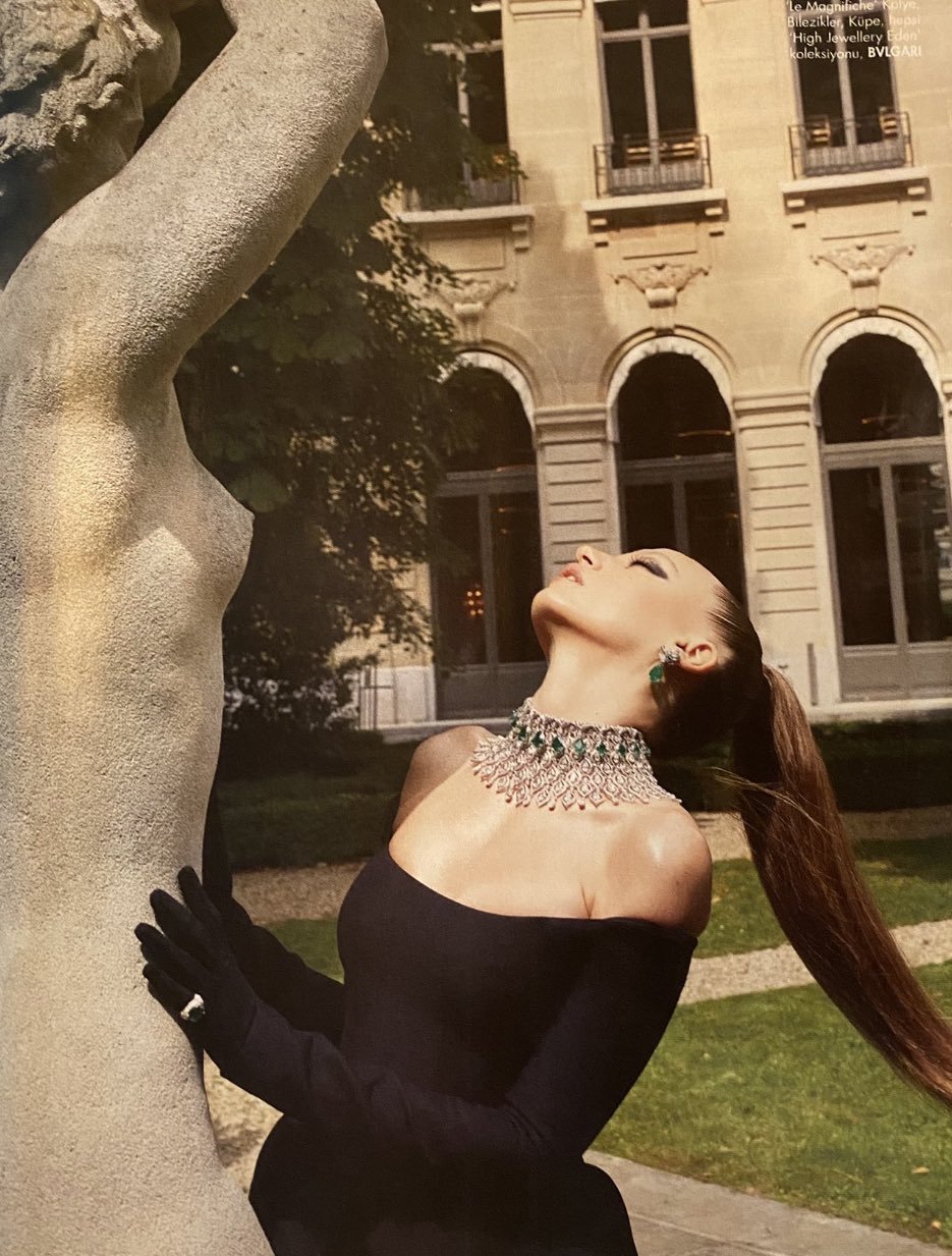 Перед нами женщина, танцующая с жизнью, чтобы развиваться, преображаться, находить свою сущность и если нужно, то писать свою сказку заново. Пока она находится в своём новом путешествии, связанным с профессией, которой она отдала свое сердце, мы встретились с ней в Париже в отеле The Hotel Potocki, который был построен в 19 веке. Мы согласны с тем, что каждым своим положением и с каждым взглядом она сияет так же страстно, как сияет коллекция Garden of Wonders от BVLGARI на ней.