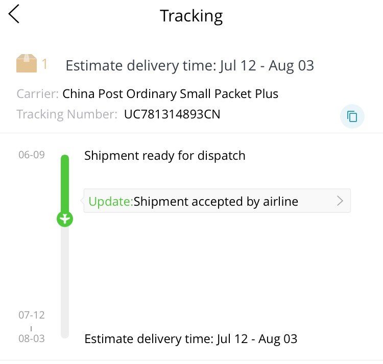 При Вас всичко е наред https://t.17track.net/bg#nums=UC781314893CN Напуснал е Китай на 19ти и понеже е на ниска стойност няма да даде статуси от България. Ще получите информация от пощата когато пристигне. Смятате 20 дена от 19.06 и проверявате в пощата и след това на всеки 15 дена, защото на 20тия ден се смята за непотърсена и "изчезва".