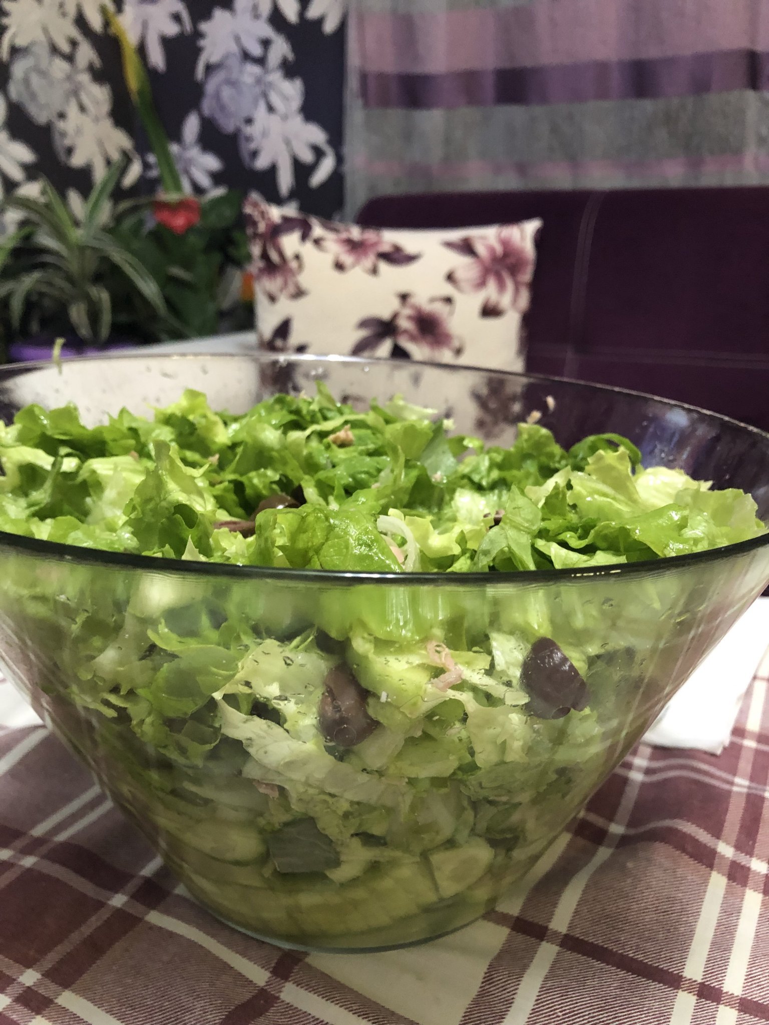 Една огромна салата с риба тон и маслини,краставица и зелен лук🍽🍴