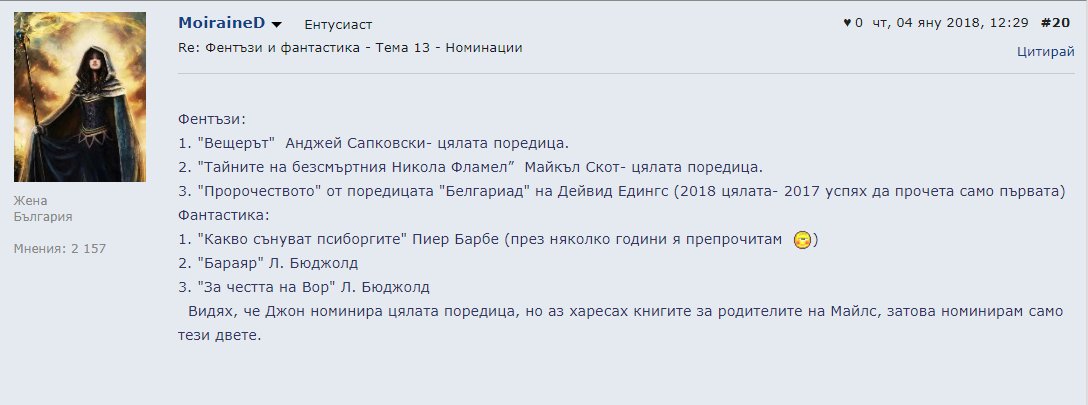 Aз не бях ли и номинирала за фантастиката? Май не си видях номинацията или се гледа да е с определен брой?