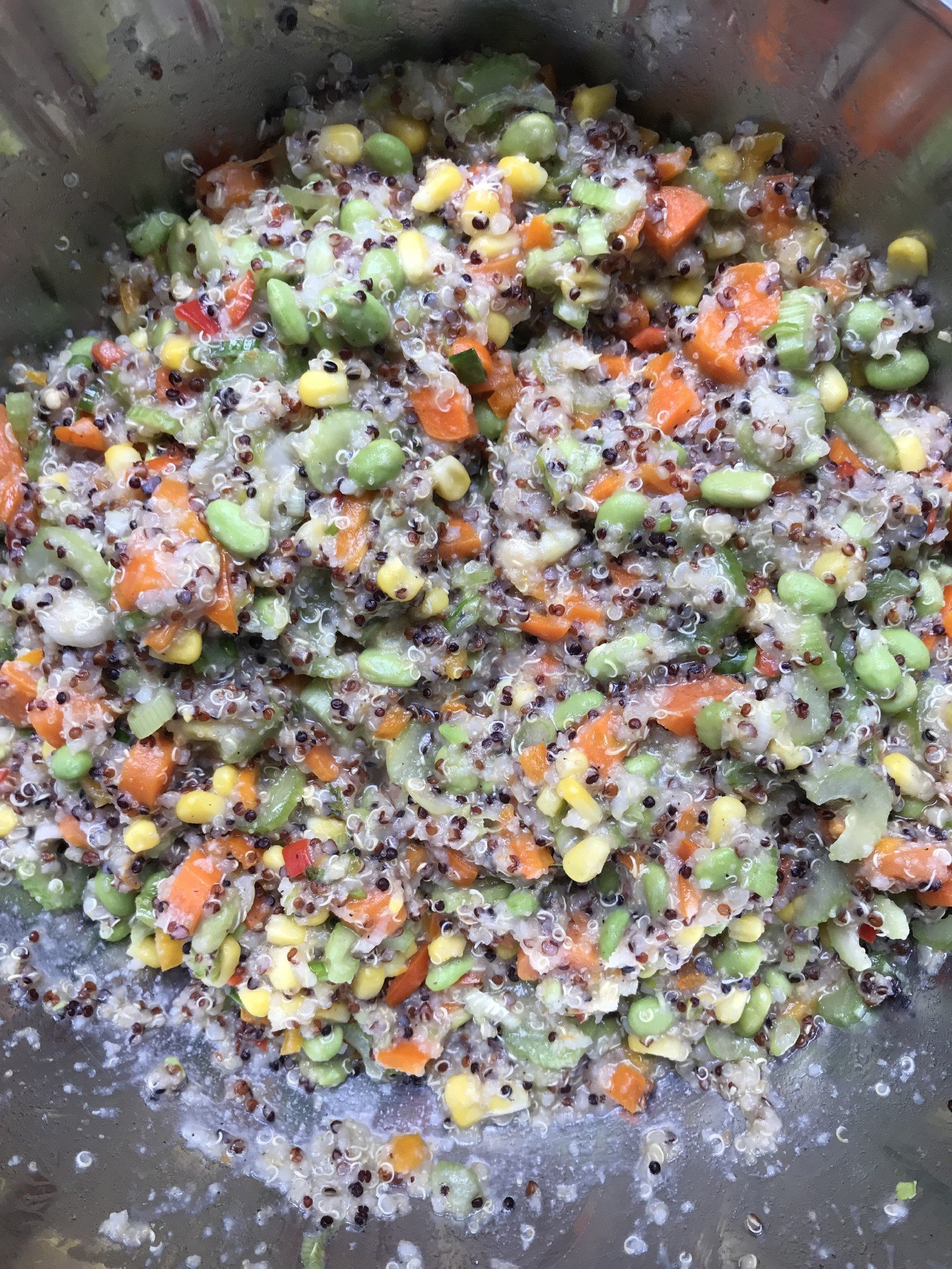 За обяд една мнооого вкусна, витаминозна, засищаща, безглутенова, красива салата ( киноа, амарант, просо, различни цветове чушки, зелен лук, царевица, еда аме, моркови, селъри, лимон, авокадово олио, сил и черен пипер).