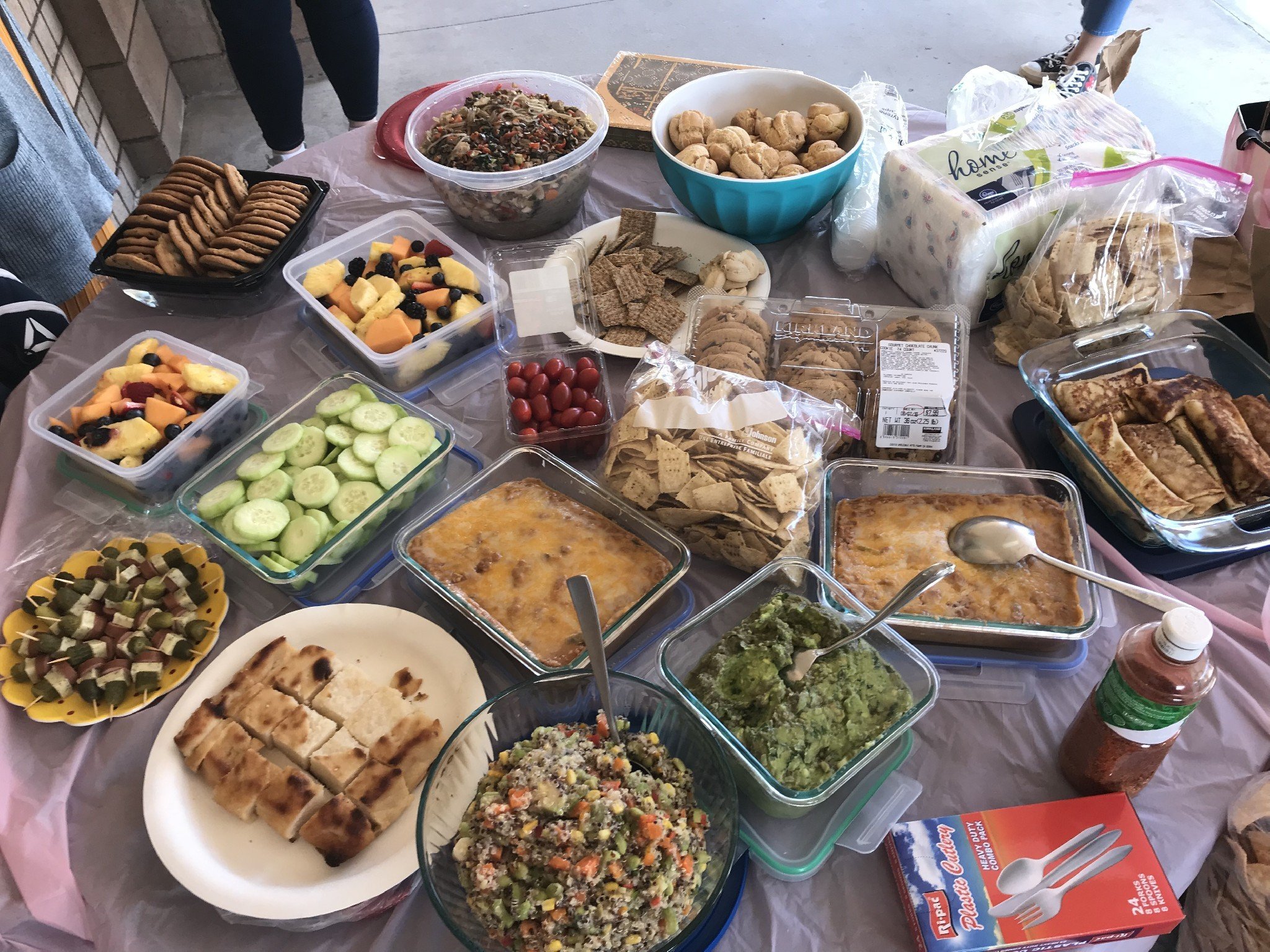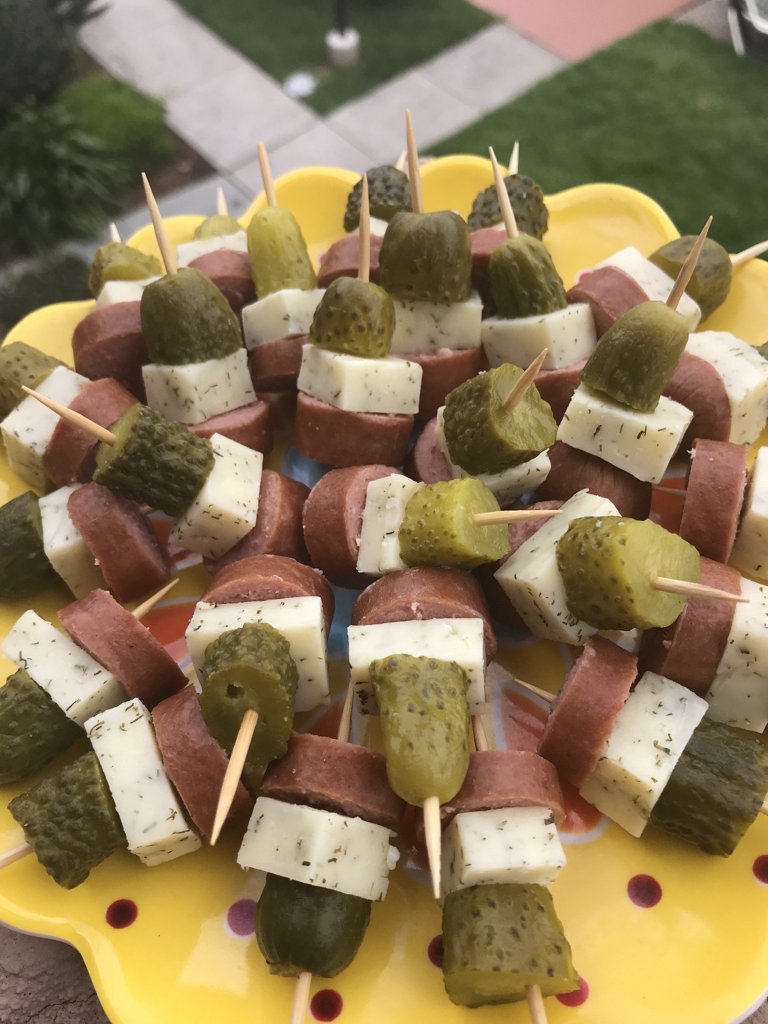 За едно дъбиране на открито днес направих малко парти хапки и занесох от вчерашната салата. И масата на открито 😄.