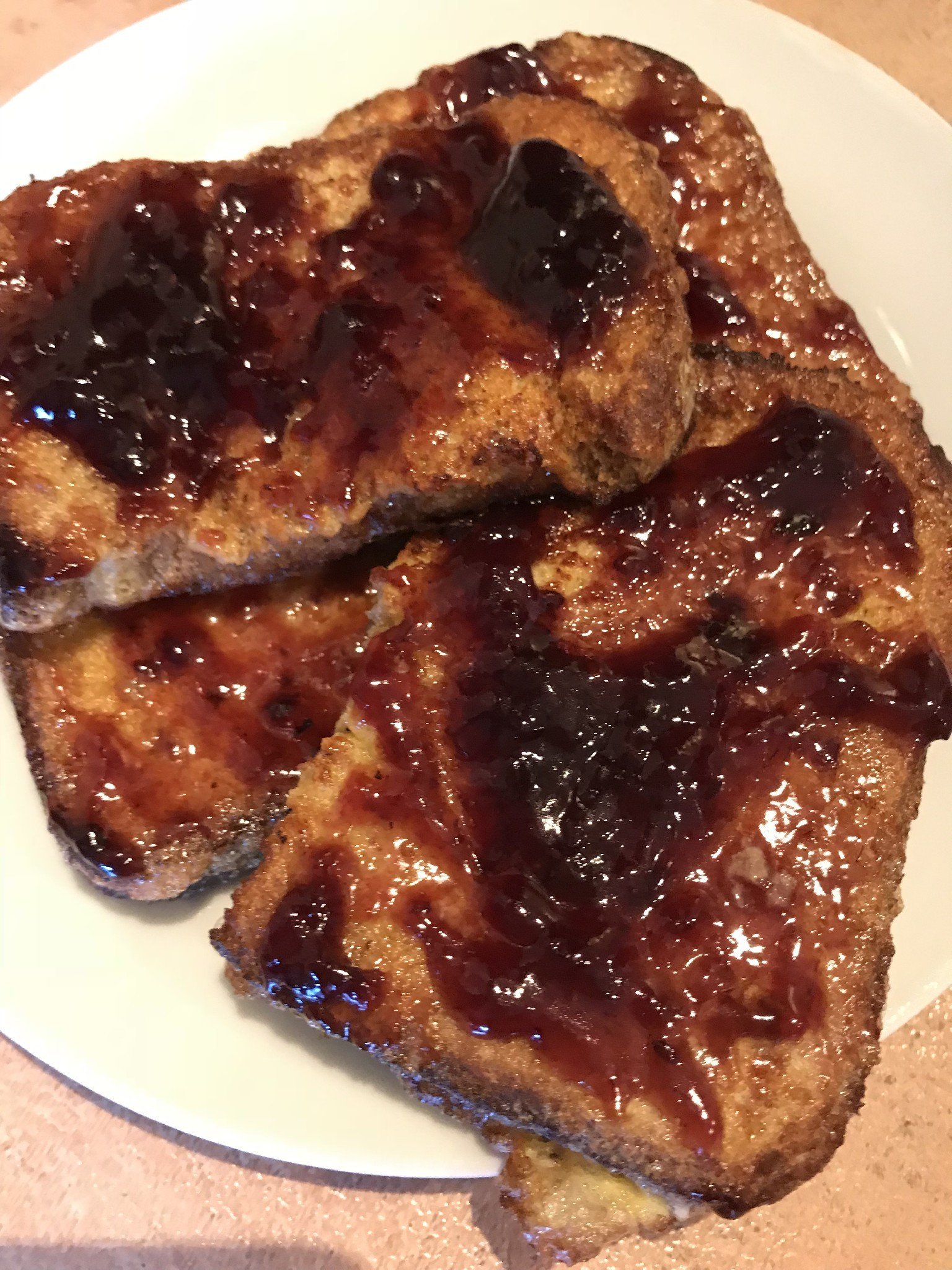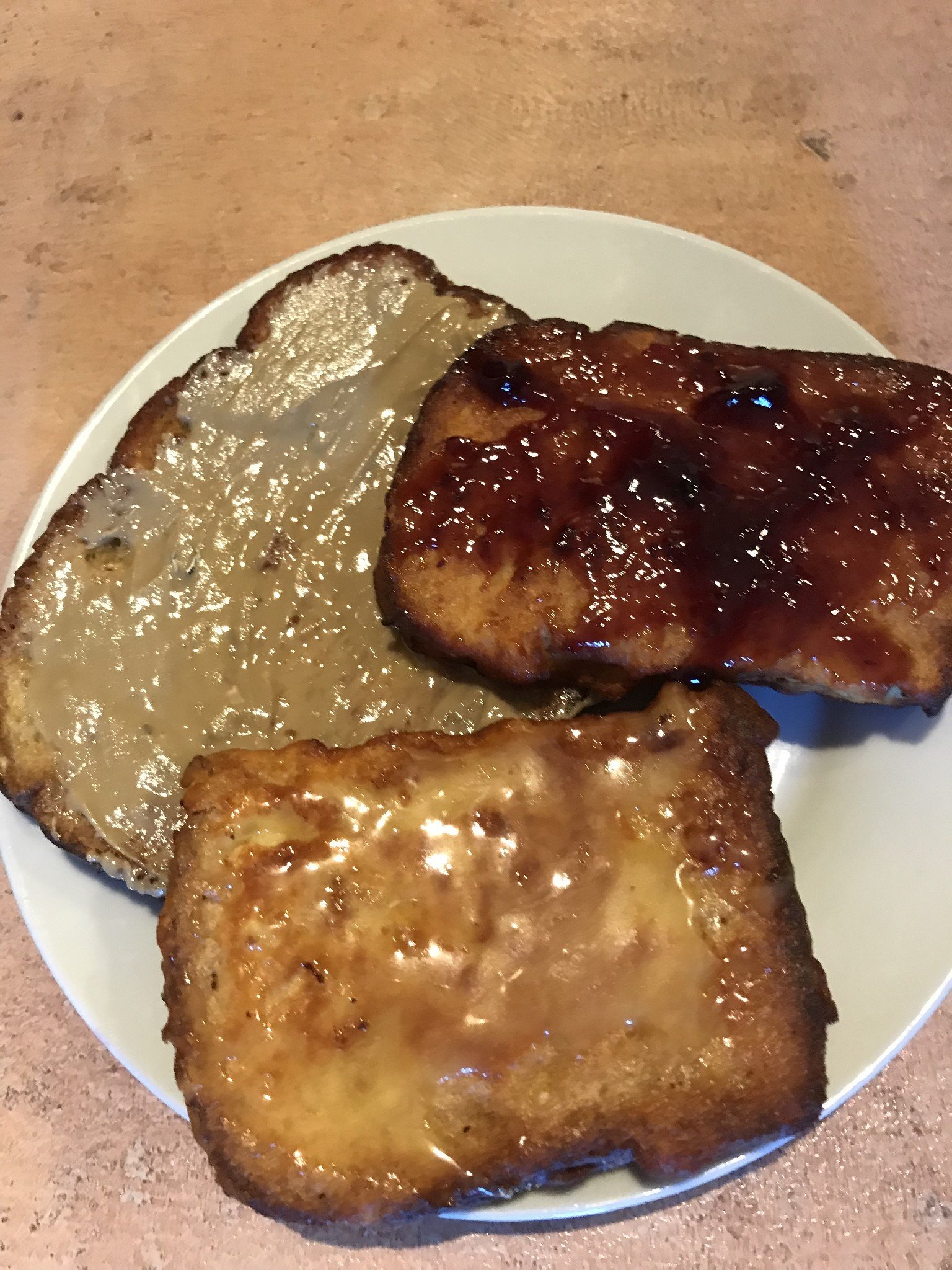 За закуска - пържени филийки със сладко от боровинки, мед и  масло от слънчогледови семки - по желание на закусвачите 😜.