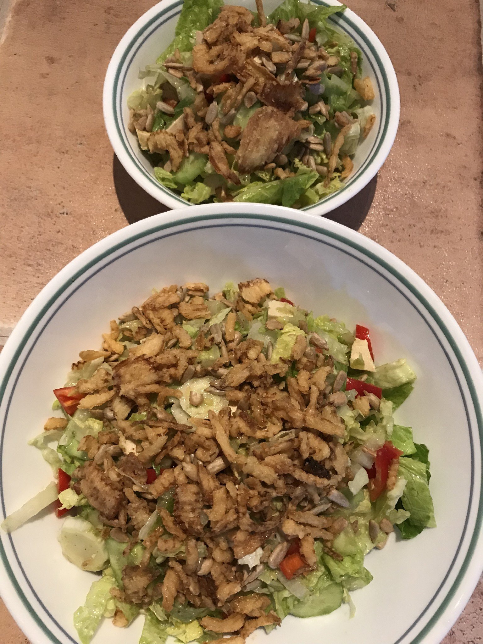 Обяд - пържени кюфтета и печено брюкселско зеле; вечеря - салата за малки и големи 😄 и кюфтета яхния с много зеленчуци ( ами трябваше да оползотворя смляното месо, което купих вчера 🤪).