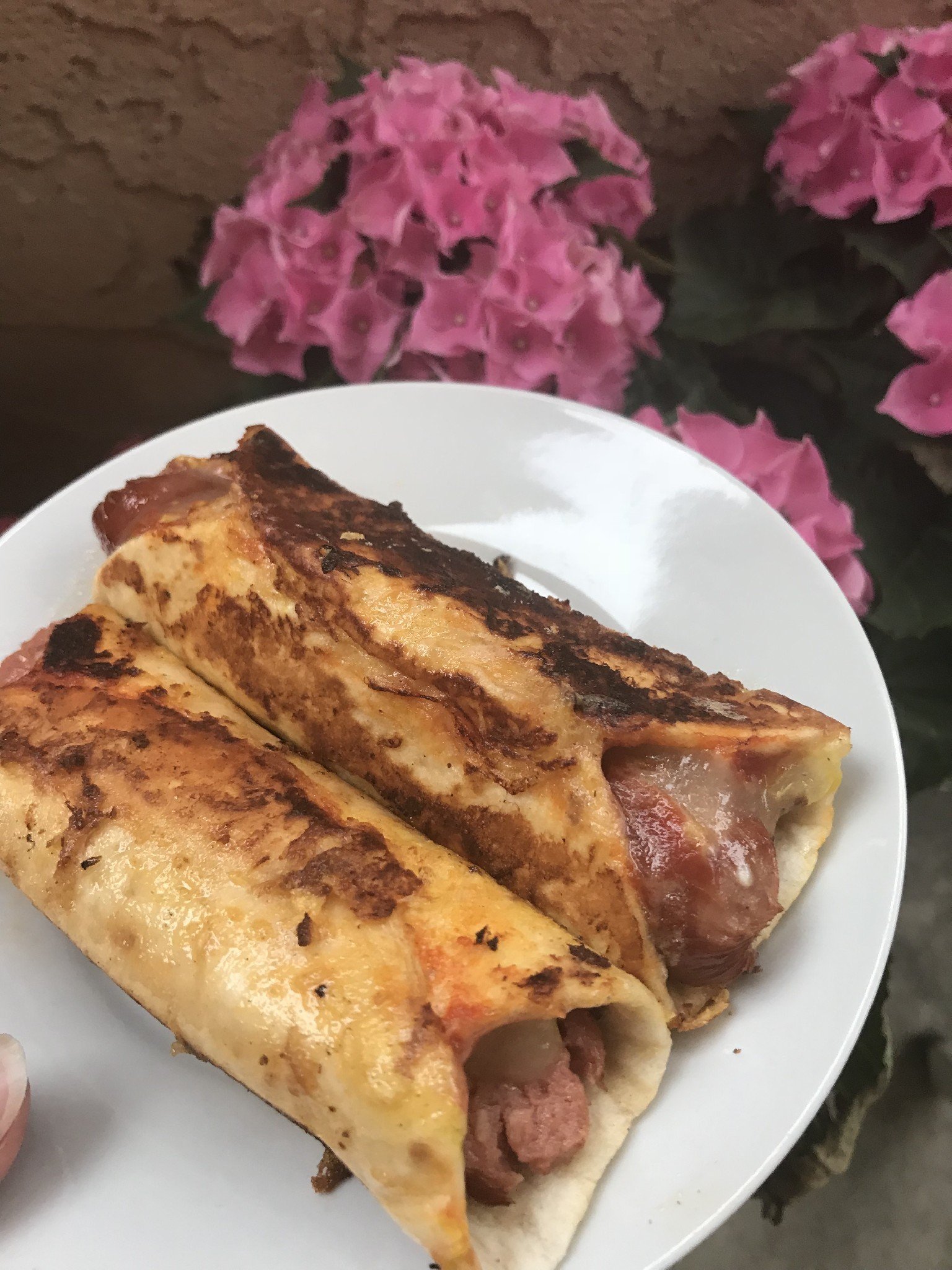 За обяда на дечко направих ей тези “пълнени неща” 😏 - мини тории, пълнени с телешко месо, чедър, кетчуп и горчица; потопени в разбито яйце и леко зепъжени в масло.