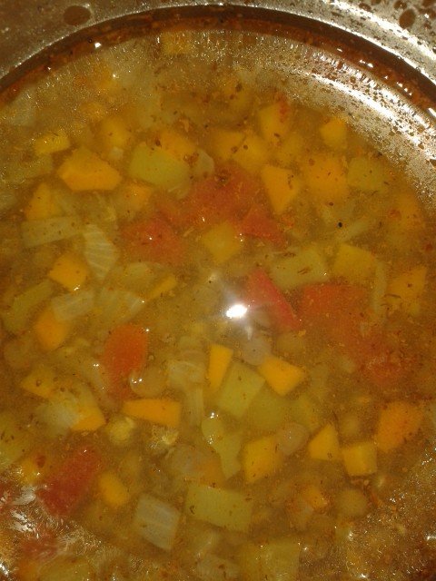 Да си покажа вкусната и уханна манджица по метода на Тайна "на око" - свински хапки с каквито имах зеленчуци, малко домати, чесън, винце, подправки и всичкото в тенджерата под налягане.