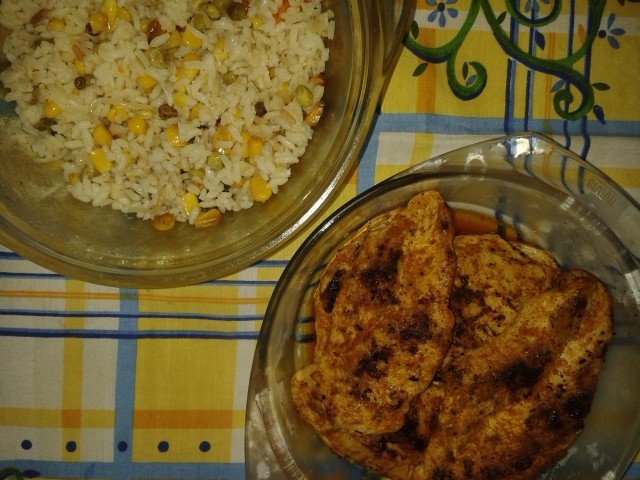 Вчера успях да сготвя "туй-онуй"в "полеви условия"-извинявайте,че не са в чинийки,но...(леща,пилешко с лук,ориз,пил.пържолки на тиган.Имаше и спагети болонезе-без снимка)