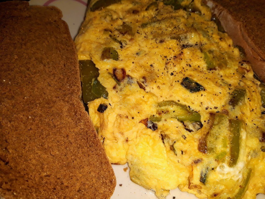 Нещо, което обожавам - пържени яйца, чушки, пресен лук.