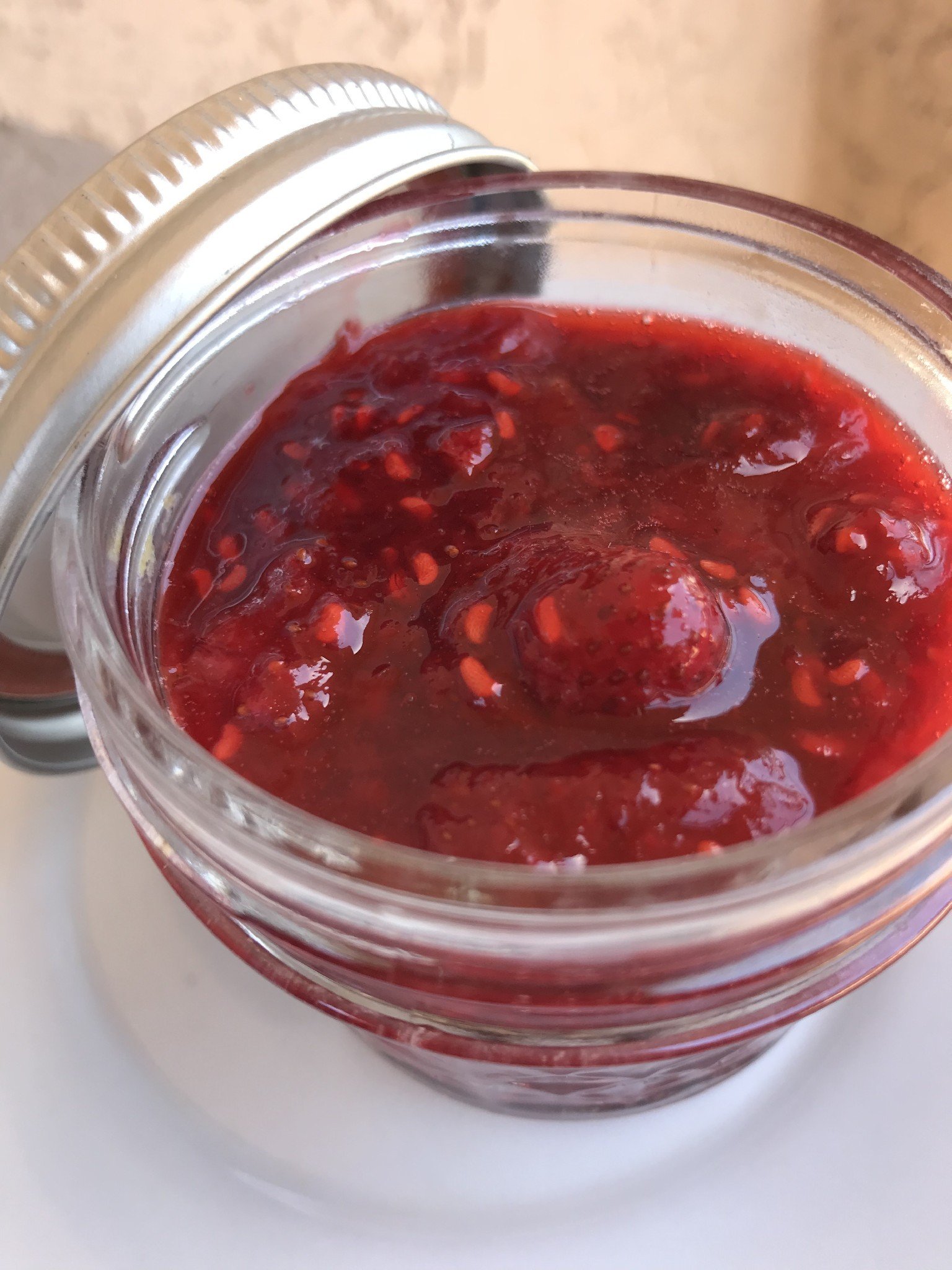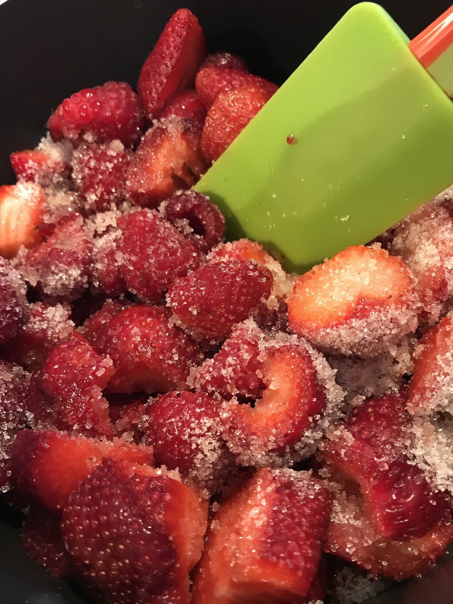 И имах био ягоди и малини в хладилника, готови да се развалят 😕. Направих две бурканчета сладко, да се намира.