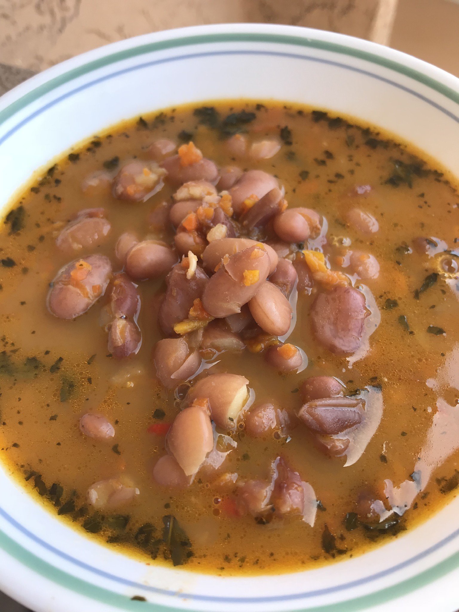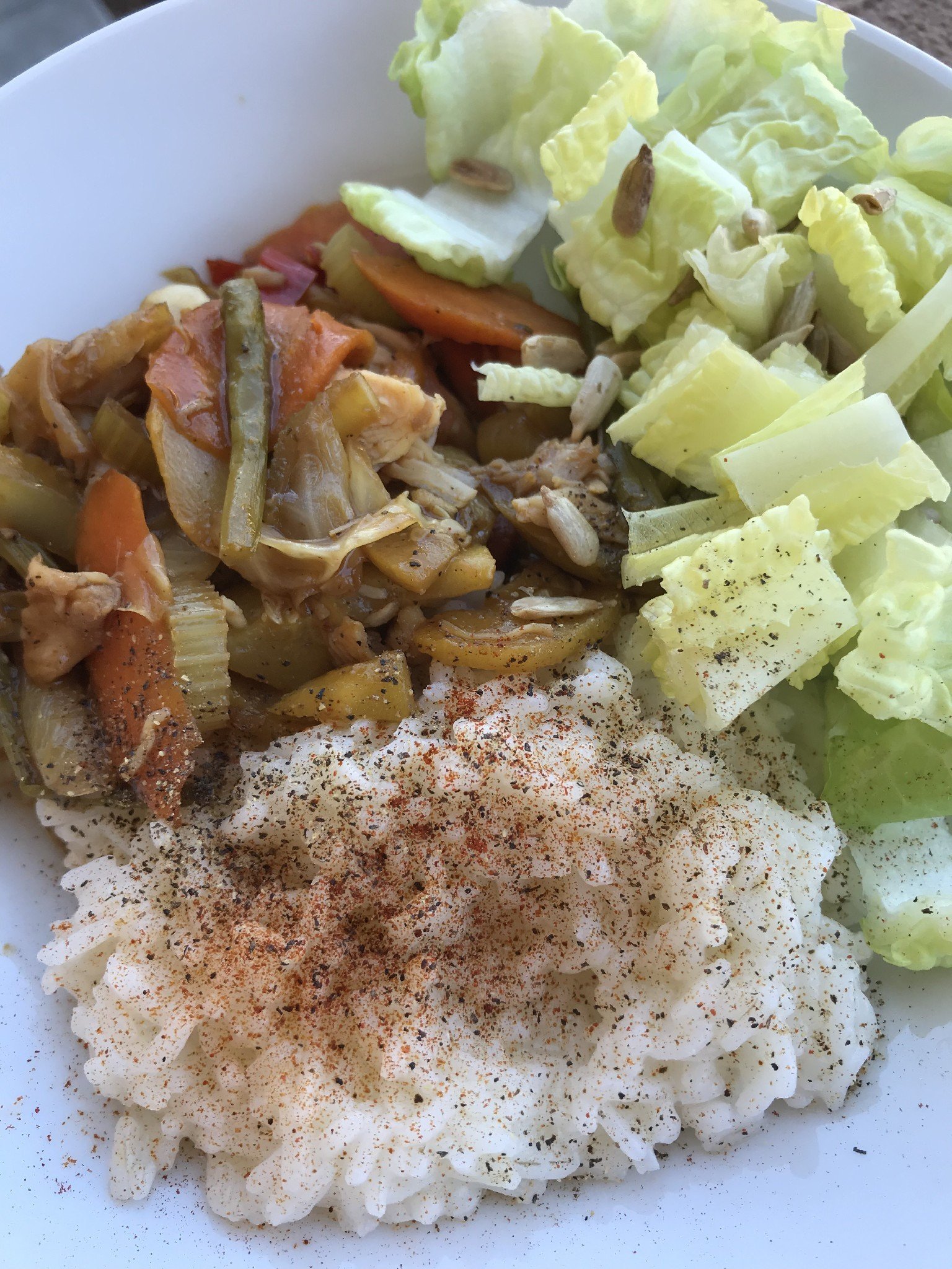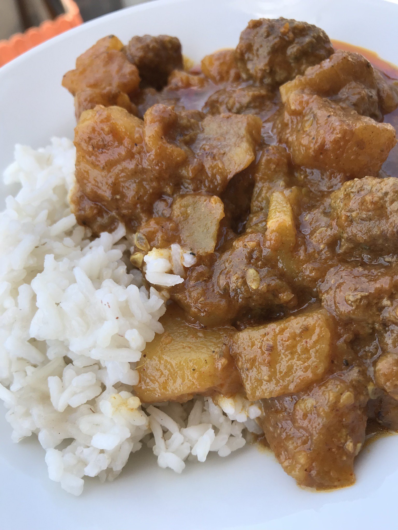 Основни тези дни - боб, индийско къри с картофи, тиквички, месо и ориз; салата.