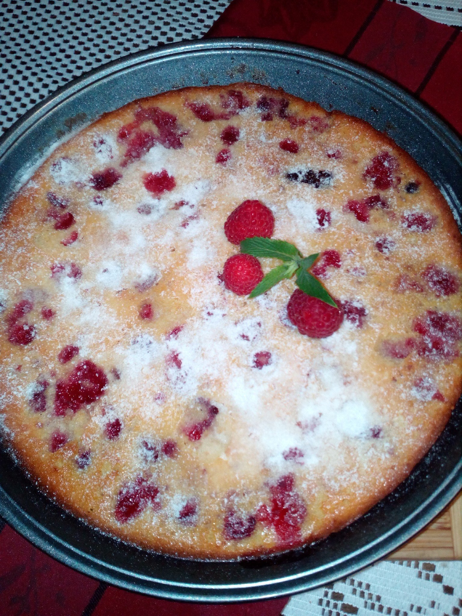 У дома все още сме на малинова вълна- клафути с малини и купен сладолед с домашно малиново сорбе, целувки и малини.
