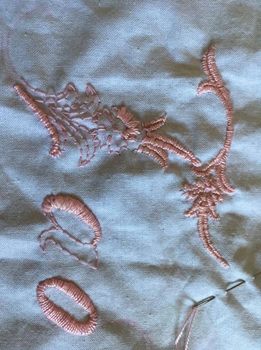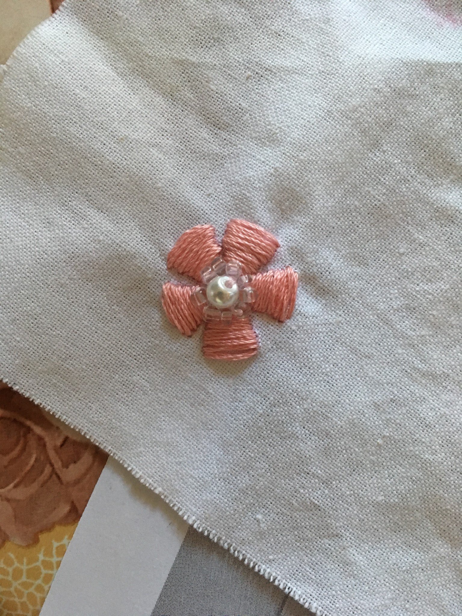 Аз напредвам с идеята за хасето, проекта е готов, но срещам трудност с бродирането на цвете... прилагам снимки на буквата, която избрахме, както и на пробната бродерия, която направих /подчертавам, че е пробно, няма да е това окончателния вид, че малко не е ок на места/. Моля за съвет как да бродирам точно цветето, защото всякак го въртя и не ми се получава добре..