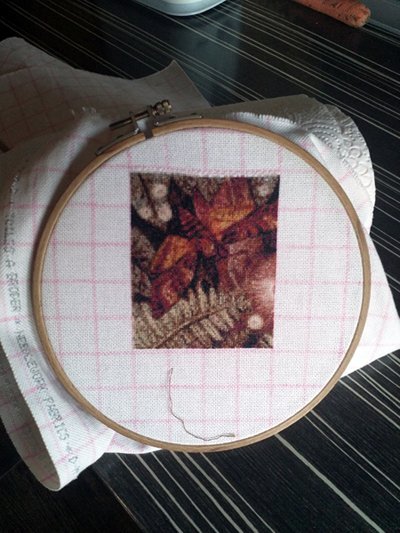 има и вариант да е на гладка тъкан, с налагане на изнищваща се канава отгоре, за да ти помага с кръстчетата.