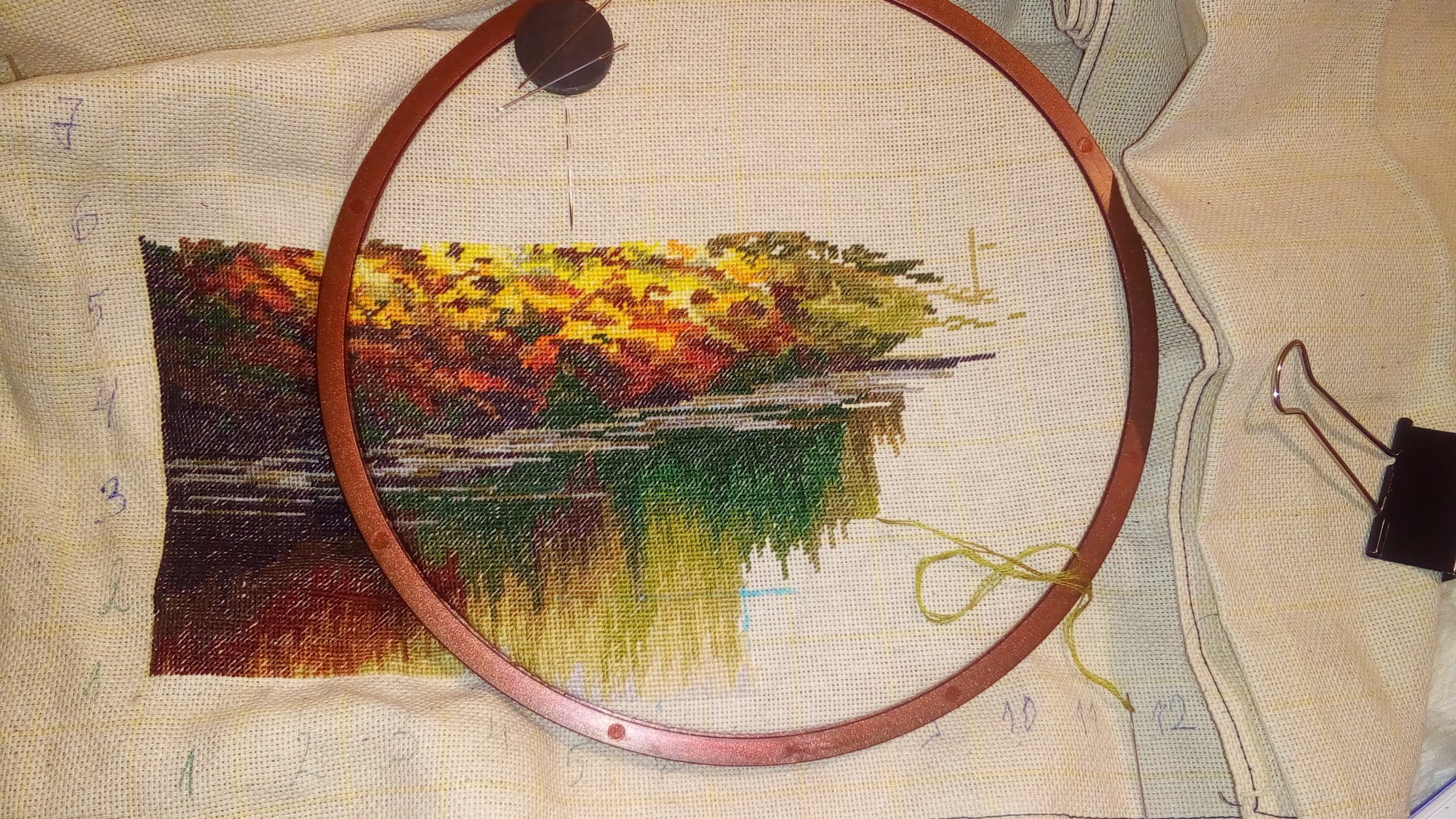 Да покажа малък етап от Есенната магия. Завършвам втория лист и съм постигнала целта за този месец. Следващите два листа - през март.