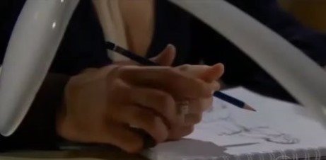 Томас престава да я чува и я оглежда доста отвратително, тя изглежда не забелязва. Дават отблизо налудничавия му поглеед, с ръка стиска яростно ръба на бюрото.