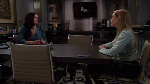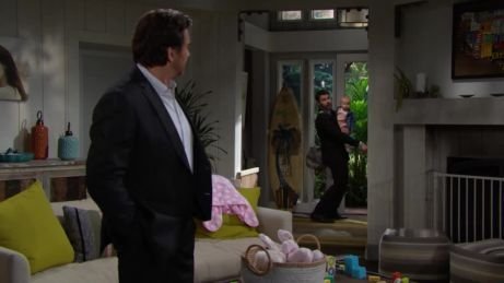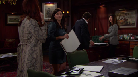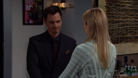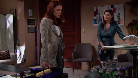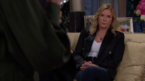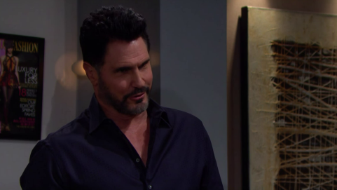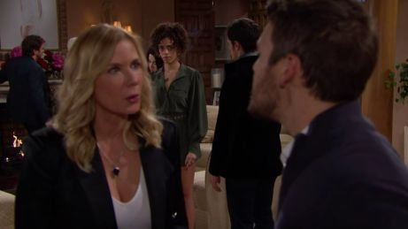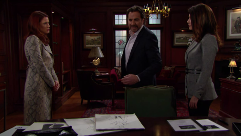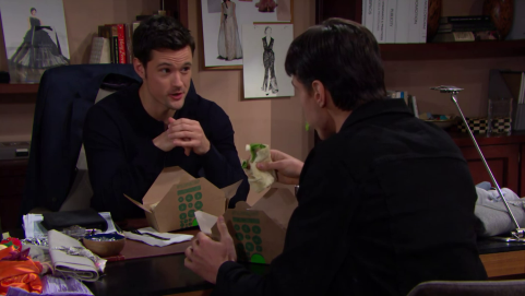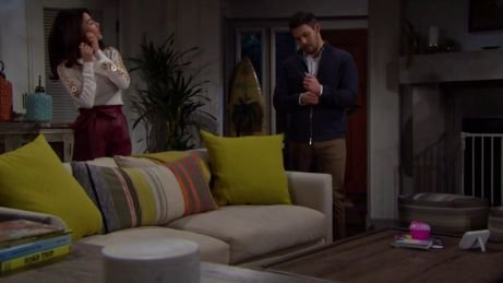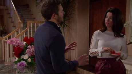 Ридж: „Остро? Томас иска да вечеря с теб. А ти се чудиш какво е намислил? Той се опитва да се реабилитира, да постъпи правилно. Вече не се интересува от Хоуп, концентриран е върху работата, Дъглас и Зоуи. Знам, че тя не ти е любимка, но ти й даде още един шанс. Защо не можеш да направиш същото за Томас? Опитва се да си оправи живота и Зоуи е голяма част от това. Защо ти е толкова трудно да се довериш на брат си? Какво пропускам?“ (Стефи си спомня намесата на Томас за целувката.)