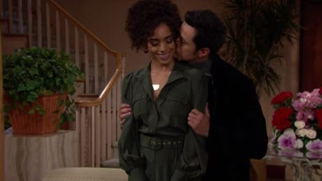 Зоуи и Томас се целуват в дизайнерския отдел.