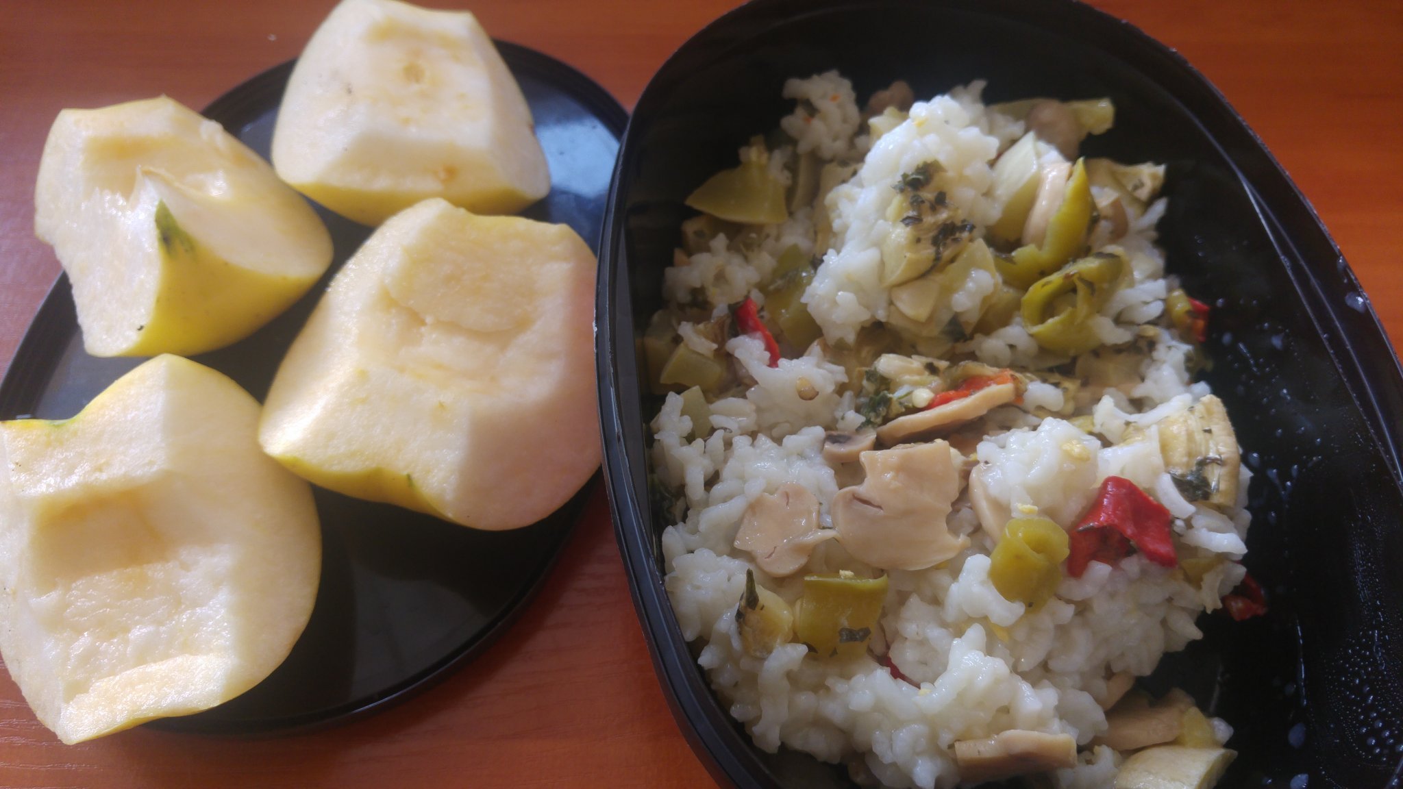 Закуска и обяд по 90 ДД. Ябълка и ориз със зеленчуци.