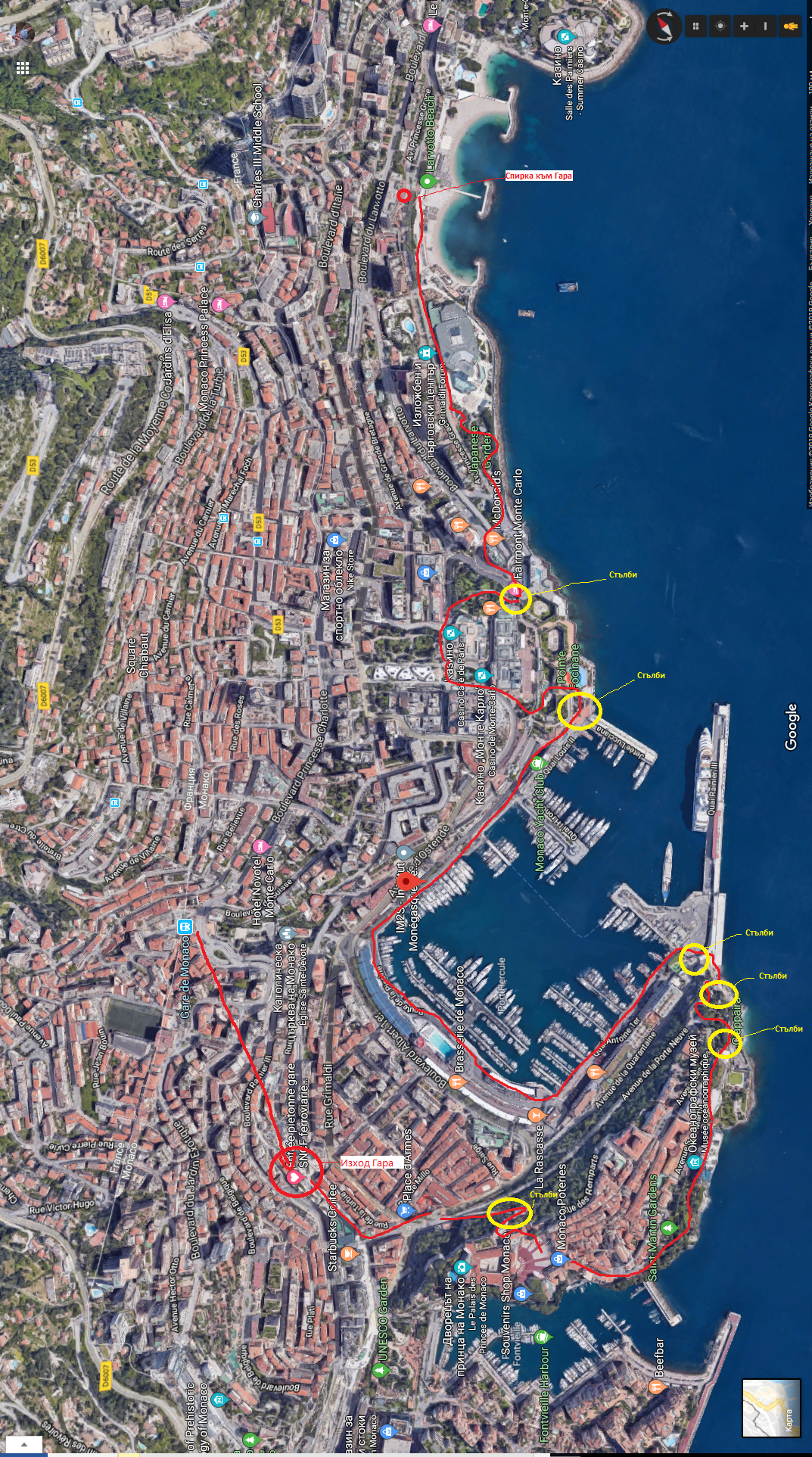 За мен разстоянията в Монако се оказаха доооста малки. От Стария град до Казиното се стига за около 15 минути макс - има стълби, които минават през крепостта и излизат на пристанището, оттам само се заобикаля то и като се стигне до Яхт клуба има асансьор за казиното. Оттам вече се отива на завоя от Ф1 и на 3-4 мин са Форумът/Японската градина/плажът.