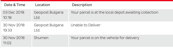 Редакция 04.12.2018: Взех си пратката. Защо нямам обаждане или смс, никой не каза, телефонът ми го има на пакета. Десием дават номер започващ с 3, който се проследява в сайта на DPD UK, обаче в Спиди пред този номер се слагат цифри пред него. Вижда се в сайта на DPD UK в страницата за проследяване.