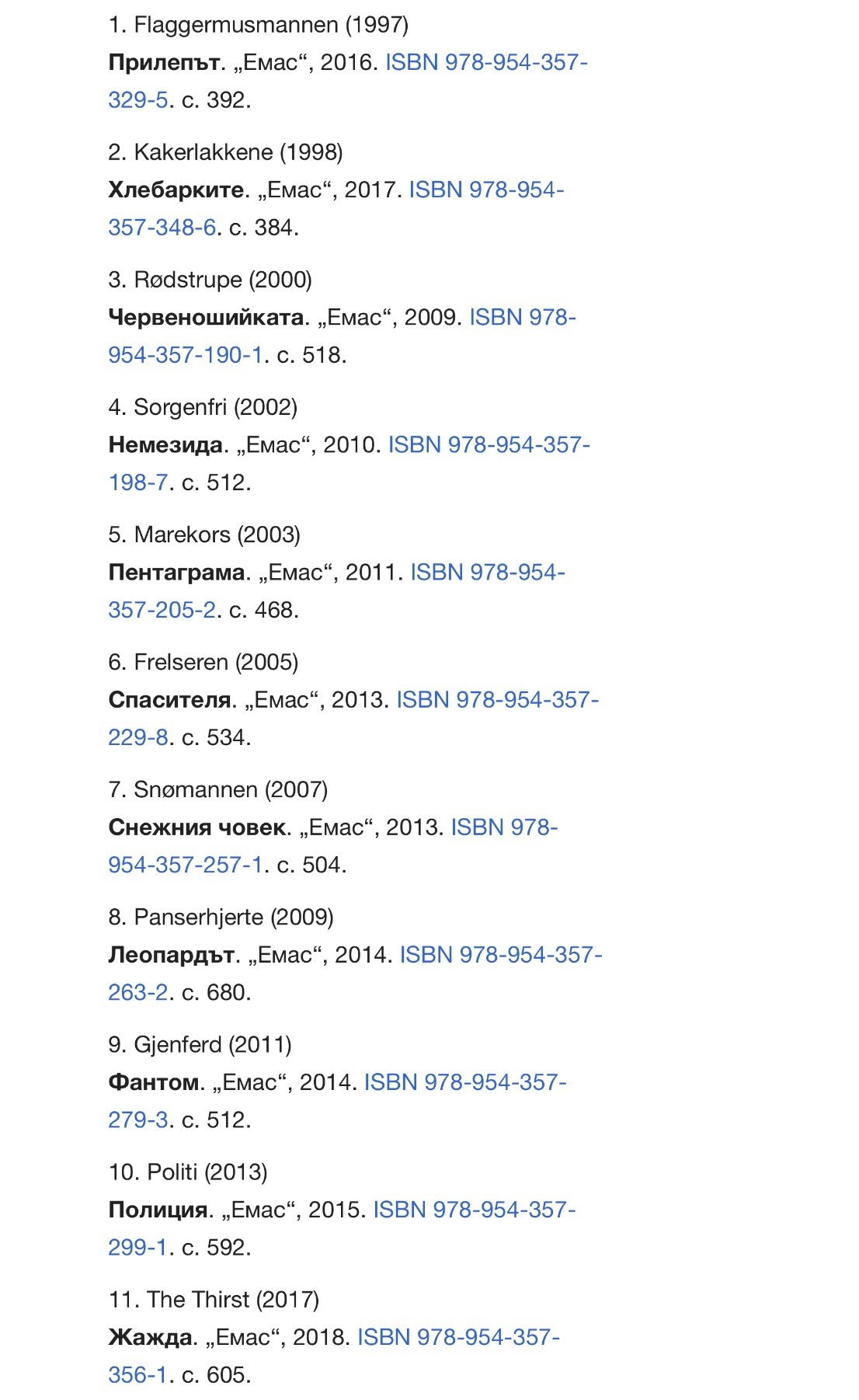 Arizona, ето я поредността на книгите на Несбьо с Хари Хуле