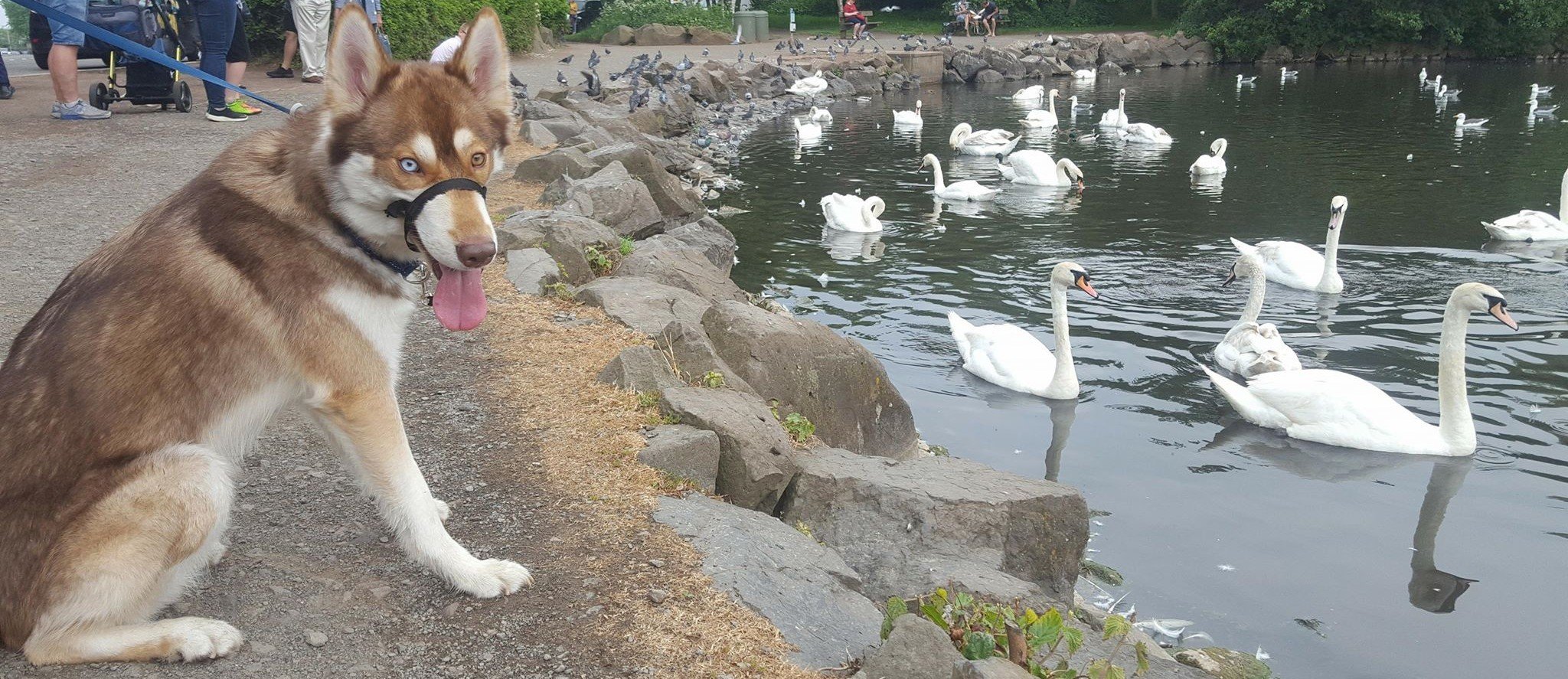 От днешната разходка, горкичкият голям страх бра от лебедите, седна да ги гледа от разстояние да не му се нахвърли някой. Satisfied