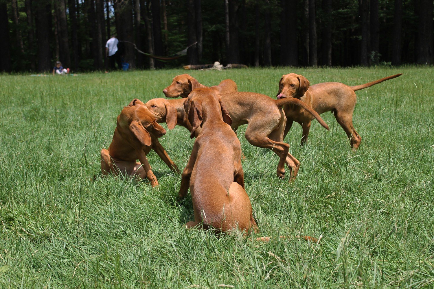 Ние бяхме на парти за рожден ден на  бившата му стопанка. Тя си поиска такъв подарък - да събере всички братчета и сестричета на една хубава полянка. Получи се страхотно парти! Най-гот беше момента, когато им махнахме каишките и се мъчехме да си ги познаем  Laughing Почерпиха ги с кучешка торта. Събраха се 9 визЪла - 7 бебета+ баба им + баща им. Майка им не можа да присъства , защото беше разгонена.    Ози става на 5 месеца и дядо му го заведе на летището да види самолетите Simple Smile