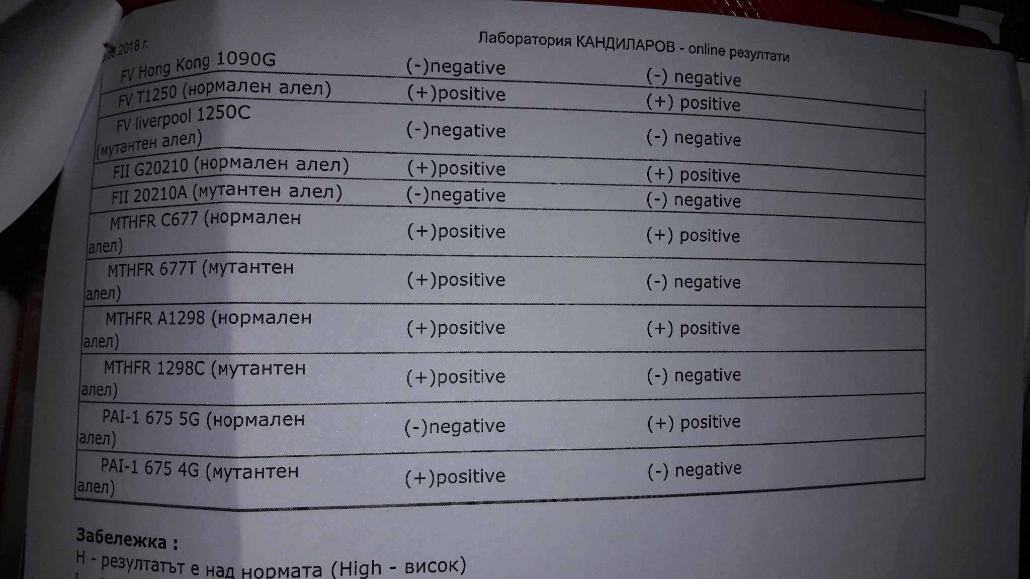 Много странно написани резултати.... не става ясно какъв е хомозигот или хетерозигот. По-добре се свържи с лабораторията за разяснения.