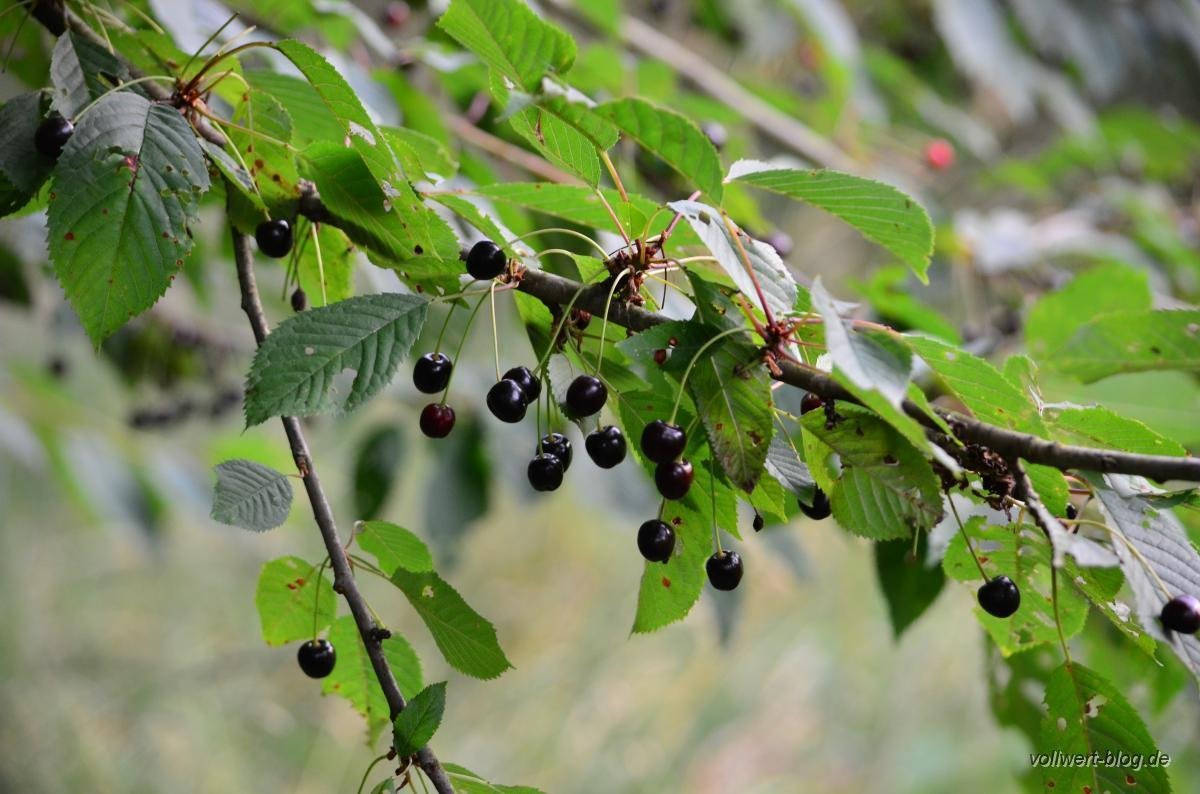 В града, в който живея, диви череши растат по улицата из квартала на всяка крачка. Това са огромни дървета, достигащи понякога размер на пететажна жилищна сграда, отрупани с толкова много тъмни, почти черни плодчета.Когато презреят и опадат плодовете, буквално образуват черен плодов килим по тротоара и улицата, и е невъзможно да вървиш по тях, без да съсипеш светлите подметки на обувките. Буквално се пружинира върху тях. Аз скандализирам от време на време немските баби, като ям от тях, или като ям дренки, и то без да умра на място още на улицата от тях, както се очаква по немските разбирания Joy На вкус са горчиво сладки, не толкова захарни, като култивираните плодове, по-тръпчиви са, доста по-ароматни и са наполовина дребни от познатите ни череши. Изглеждат така