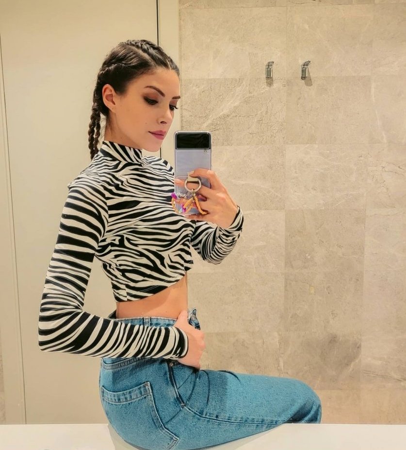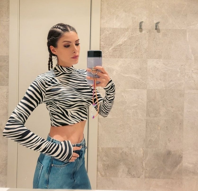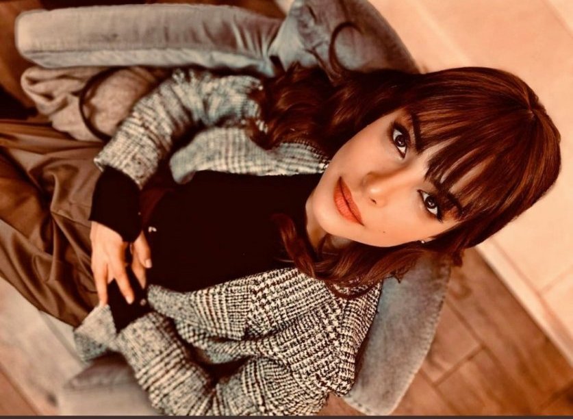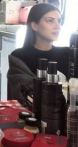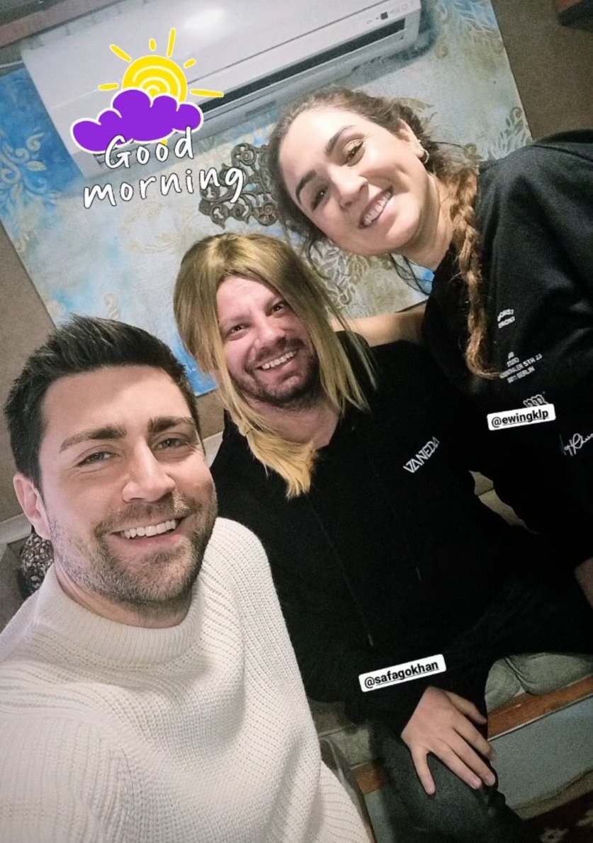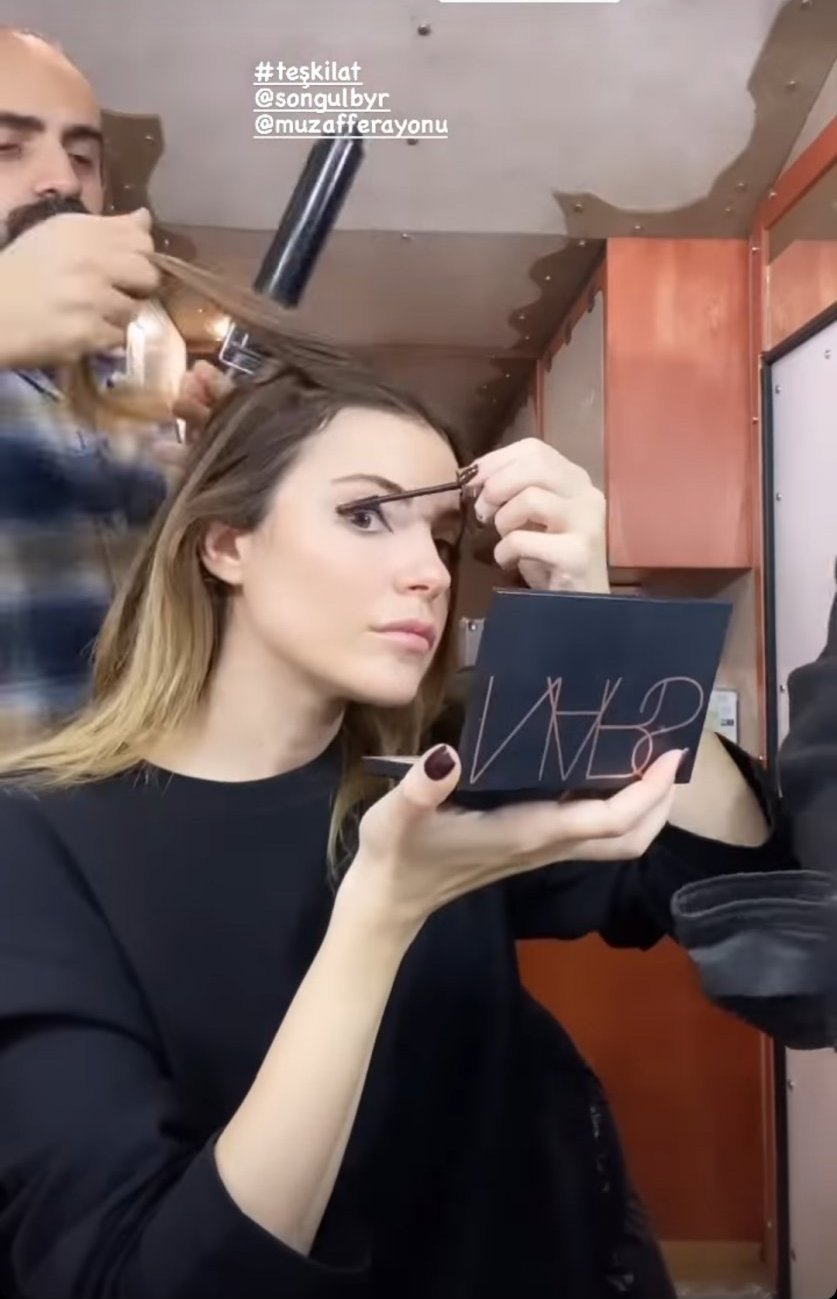Дениз с грим и прическа от сета. Явно с перука е била.