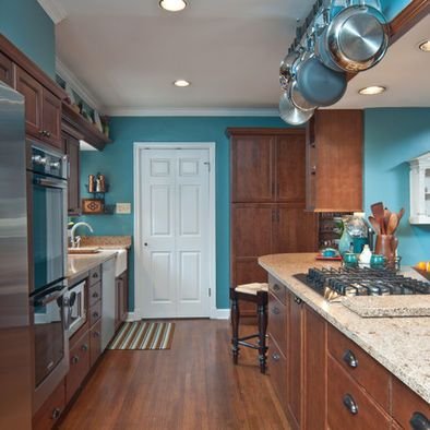 Какви са подходящи цветове за стените в коридор с бели плочки на малки сиво-черни точки и мебели от махагон?