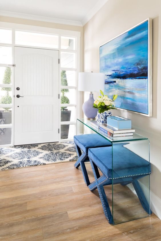 На първо четене веднага ми се стори - белият под, представих си една ефирна бяла стая с нежно синьо.