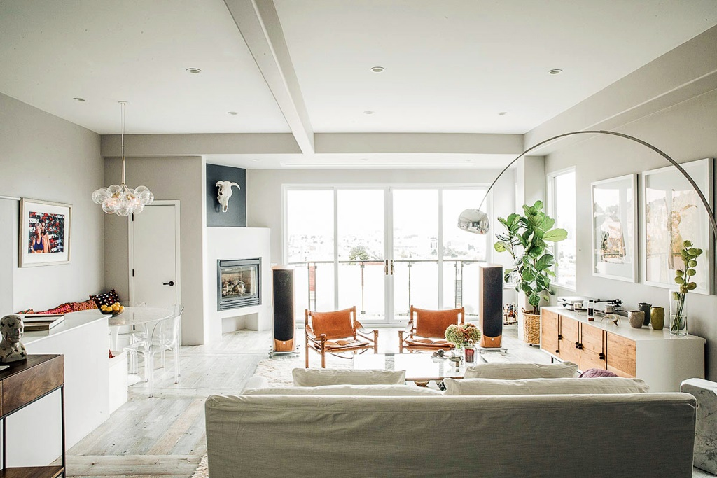Апартаментът е страхотен! Смесени са трайбъл, индъстриъл и сканди стил. Точно тези пластмасови столове създават въздушност и илюзия за пространство, понеже са прозрачни. На снимката на камината черепът го няма, там е карта в рамка и е добавен столът бертоя и още джунджурии. Стилизирането за фото сесия може да изглежда доста различно от реалния вид на дома.
