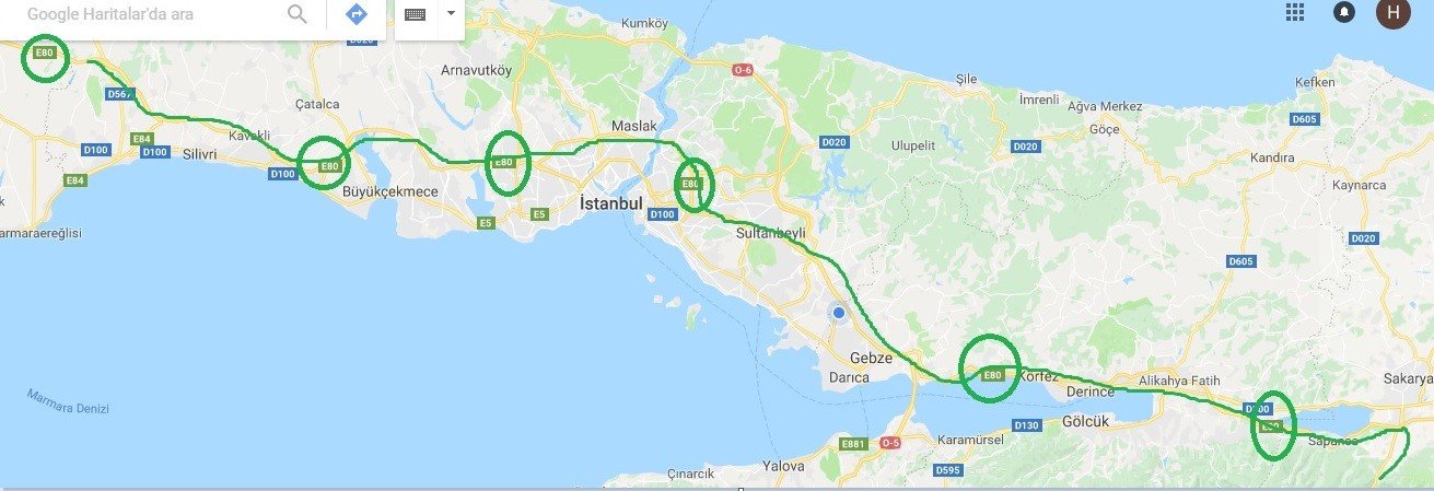 даите така ISTANBUL-IZMIT-SAKARYA(PAMUKOVA) BILECIK-ESKISEHIR- и на долу...