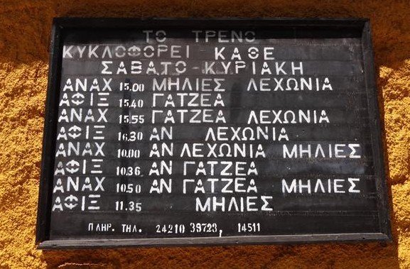 Имайте предвид, че когато в Гърция има празници за влака свършват местата. Трябва предварителна резервация. Която може да направите от хотела. На място билетите се продават по списък в такива случаи.
