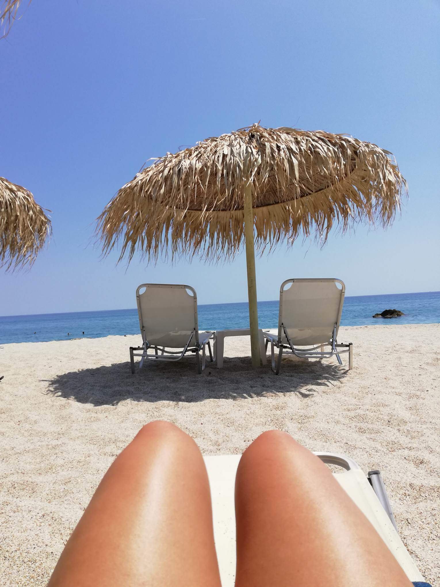 Агиос Саранда - любим мой плаж с най-широката ивица от всички, пясък, много голям с 4 бара и много, много свободна зона.