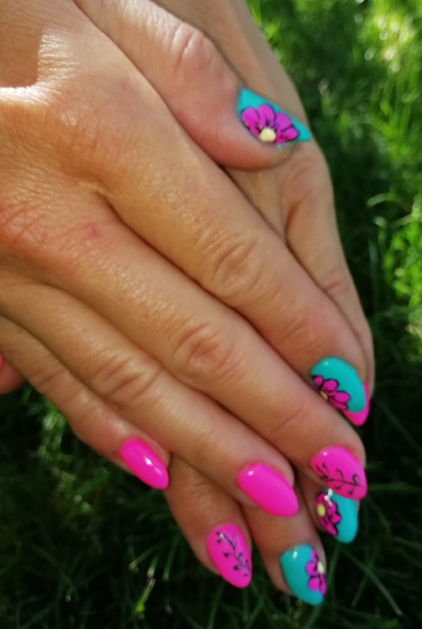 Гел не се беше отлепил само по свободния край. Свалих изцяло гела и сложих гъм гел на блускай с база на блускай. Средния го беше обръщала три-четири пъти. Горкия го изрязах и изградих. Ако не беше ел. пилата щях да пиля 3часа на ръка. Голяма помощ са тези пили. Изкарах курса за апаратен маникюр и вече работя само с пилата.
