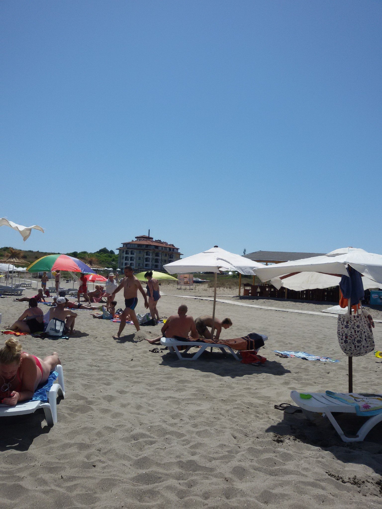 В Белла Виста съм, харесва ми храната - всичко е вкусно - дори кашкавалът сутрин. Плажът е ок, ползваме платената част - 5л лв чадър, 5 лв - шезлонг, важи за целия ден - може да се прибереш в хотела и после се връщаш пак, без да плащаш, само пазиш касовата бележка. Има и свободна зона. Водата в морето е топла, времето също - без облаци.