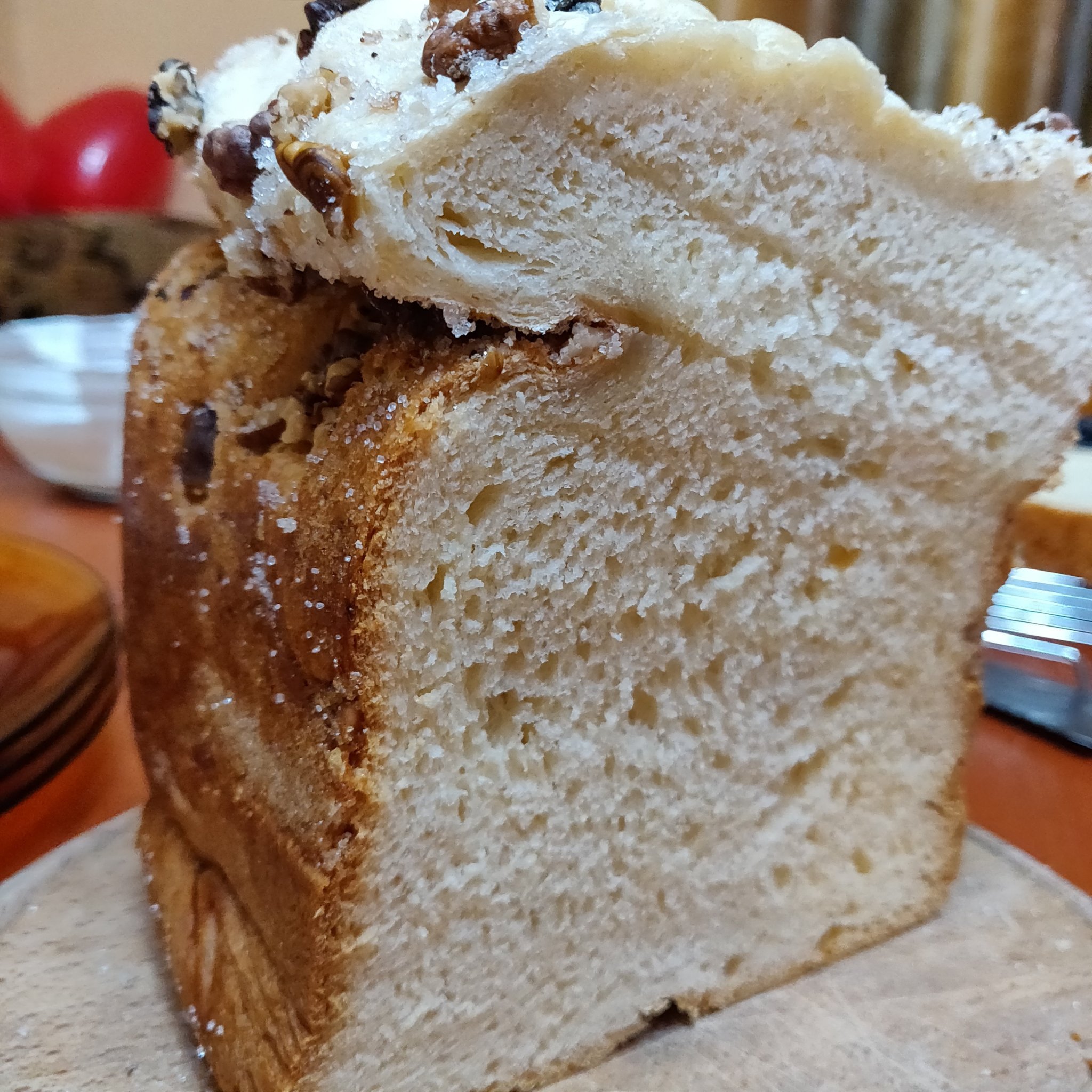 Трябваше да го намажа с цяло яйце, аз само с белтък го мазах и е доста белезникав, но е добре опечен... хлябовете, които правя, също слягат, но не чак толкова.